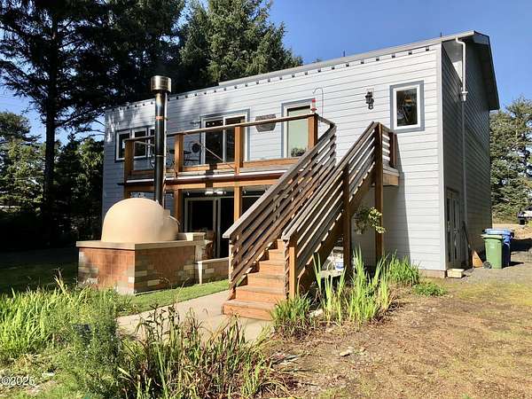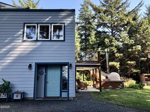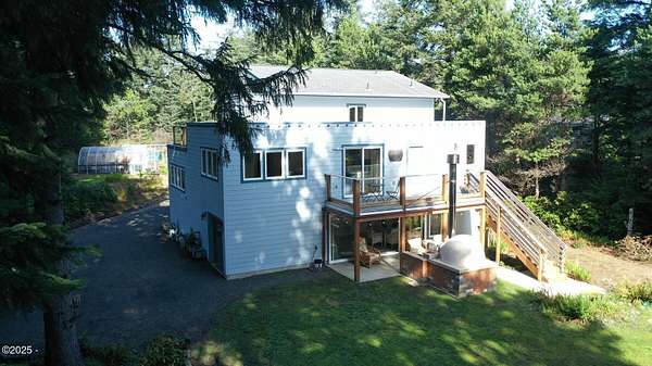 REDUCED! Sellers are Highly Motivated! An artisan's dream retreat nestled in a picturesque landscape! Stunning ocean-view 3-story home w/acreage offers a blend of comfort and natural beauty. INVESTMENT OPPORTUNITY- Spanning 2,060 sf, this residence is ideal space designed to accommodate in-laws, private multi living or guest stays. Two levels boast its own living room, kitchen, bedroom & bath ensuring privacy and convenience. Indulge in relaxation and entertainment where a sauna and hot tub await to melt your stresses away. Leisurely gatherings include a convenient bar & slider leading to the verdant backyard. For the culinary enthusiasts a custom-tiled pizza oven will elevate your outdoor dining experiences. For hobbyists, a large double RV garage/shop provides ample space for projects. Property is just a short walk to stroll and explore 7 miles of sandy beach. Immerse yourself in the tranquility of the surroundings, where 1.68 acres of well-groomed land beckons with a charming assortment of pine trees, floral bushes, walking trails, walk-in greenhouse, chicken coop, and a fenced garden, perfect for cultivating your green thumb. Delight in the bounty of nature with hundreds of huckleberry bushes dotting the landscape, promising seasonal delights. Discover serenity, comfort, and endless possibilities in this coastal haven, where each day unfolds amidst the beauty of nature and the comforts of home. For the artisans and craft/builder enthusiast Sellers are including several tools. Come and experience the quintessential coastal lifestyle - your sanctuary awaits.