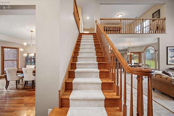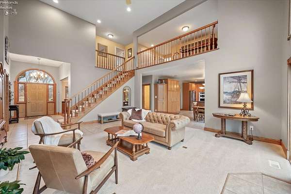 Set on a breathtaking 2.44-acre estate, this all-brick residence offers a rare blend of privacy, elegance, and picturesque surroundings. A serene location near the Huron River, with a neighboring horse farm enhances the peaceful, countryside ambiance creating a setting that feels both refined and retreat-like.Inside, the home unfolds with impressive scale and thoughtful design. The main-level primary suite is a true sanctuary, complete with an expansive, custom-style closet that feels straight out of a luxury magazine. The open-concept great room is ideal for both entertaining and everyday living, while a generously sized bonus room with a private office or play nook and additional bath adds versatility to the layout.The lower level has been beautifully reimagined to deliver over 2,000 square feet of elevated living space. Designed for both comfort and entertaining, it features a sleek quartz-topped bar, a sophisticated dry bar with built-in beverage centers, and stylish finishes throughout from curated feature walls to designer lighting.Additional highlights include a chef-inspired walk-in pantry, a second-floor open den, main-level laundry, and a fully floored attic for added storage. Recent updates such as new flooring, fresh paint, and a remodeled second-floor bath further enhance the home's modern appeal. Dual furnaces and air conditioning systems provide efficient zoned climate control, ensuring year-round comfort.Ideally located near Thunderbird Hills Golf Course and Driving Range, this exceptional property offers a lifestyle defined by luxury, space, and natural beauty. Call today, this one won't last long!!