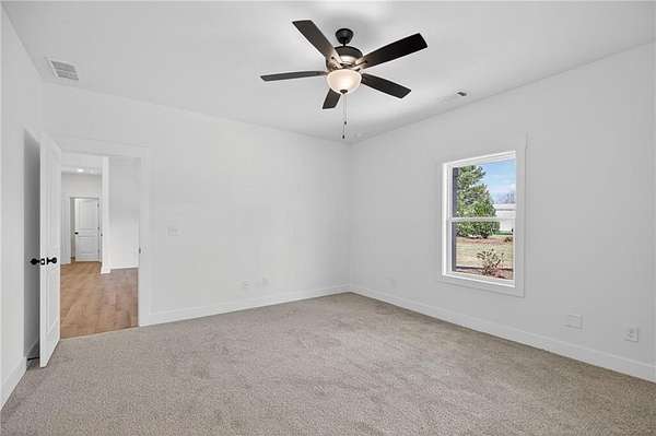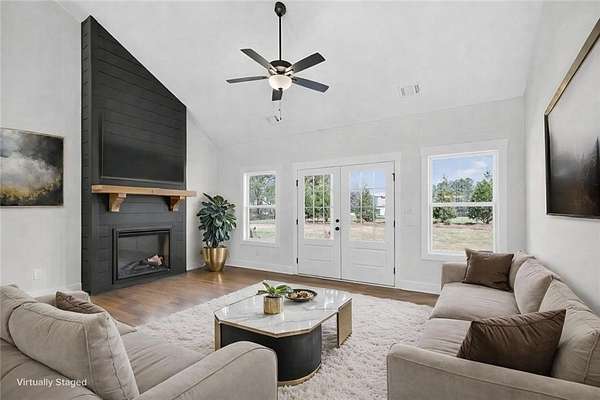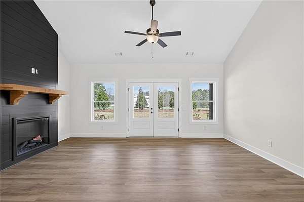 Construction is complete on this stunning new modern farmhouse, set on a peaceful 14.69-acre property and designed for comfortable ranch-style living. With a full wraparound porch and a thoughtfully planned open-concept layout, this home captures the charm of country living while offering the finishes and functionality buyers want today. Inside, the vaulted family room features a custom shiplap fireplace that creates a warm and inviting centerpiece. The gourmet kitchen is both stylish and practical, complete with a vent hood, custom island, farmhouse sink, stainless steel appliances, shaker-style cabinetry, granite countertops, and a spacious pantry. The primary suite is a private retreat with a luxurious en-suite bath that includes double vanities, an oversized custom tile shower with a custom glass door, and a large walk-in closet. Two generously sized secondary bedrooms, each with large closets, share a convenient Jack-and-Jill bath. The oversized laundry and mudroom offer built-in cabinetry and extra storage, adding even more everyday convenience. The expansive wraparound porch is the true heart of this home, perfect for morning coffee, quiet evenings, or entertaining family and friends. Standard features include vinyl siding, upgraded black exterior windows, luxury LVP flooring in the kitchen, living room, entry, and baths, plush carpet in the bedrooms, and quality finishes throughout. With no HOA, this private property offers the freedom, space, and tranquility of rural living while still being conveniently located just minutes from Rockmart, Cedartown, Villa Rica, and Bremen. This modern farmhouse blends beauty, comfort, and functionality on more than 14 acres, making it an exceptional place to call home. If this floor plan is not the perfect fit, additional options are available. Ask about available incentives when utilizing our preferred lenders.