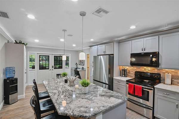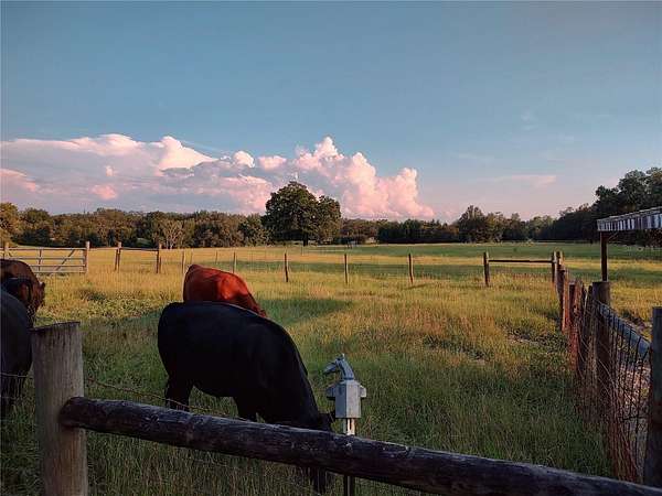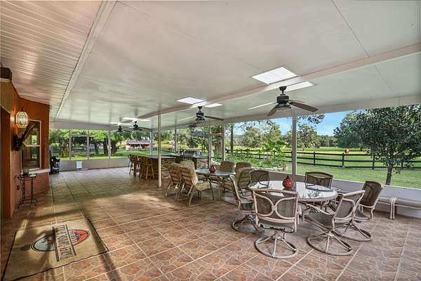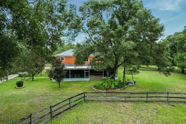 Welcome to 35126 William Lane, a rare 20-acre Eustis estate offering rolling pastures, multiple metal buildings, and a spacious 5,536 sq ft residence designed for privacy and upscale country living. The 4-bedroom, 6.5-bath custom home features a durable metal roof, dual tankless water heaters, a fully renovated kitchen, and a main-floor primary suite. An expansive 46.5' x 24' screened lanai with outdoor kitchen overlooks panoramic pasture views, and a wraparound porch adds classic Southern charm. Additional highlights include an upstairs office, abundant natural light, and generous living spaces ideal for entertaining or multi-generational living.