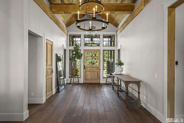 Unrivaled Luxury. Unmatched Privacy. A Once-in-a-Lifetime Opportunity at 3513 Cutoff Trail, Clear Creek Tahoe. Positioned on the most coveted estate lot in Northern Nevada's most remarkable mountain community, the Sierra Comstock Estate is a rare offering of privacy, luxury, and scale that simply doesn't exist elsewhere. Perched on 3.63 pristine acres, with sweeping, unobstructed views across the protected expanse of Jack's Valley and the Sierra Nevada mountains, this estate borders thousands of acres of National Forest-offering the serenity and grandeur of owning thousands of acres, without the maintenance. Thoughtfully designed and masterfully built, the nearly 5,000-square-foot custom residence pays homage to Nevada's rugged heritage while embracing modern luxury at every turn. Reclaimed wood beams, handmade tile, and a monolithic princess quartz island set the tone for a home that is both warm and elevated. Four spacious bedrooms, four and a half bathrooms, a dedicated office, and a breathtaking media room are complemented by radiant floor heating in every bathroom, three furnaces, three A/C units, two water heaters, and full smart-home integration with solar power and backup generator. The gourmet kitchen, anchored by Miele appliances and bespoke cabinetry, flows effortlessly to expansive outdoor living areas-featuring a spa, fire pit, BBQ kitchen, and lounge spaces oriented to capture the stunning vistas. Fire safety was prioritized from inception, with a full fire suppression system, fireproof concrete shingle roof, and a well maintained firebreak trail surrounding the property. This estate is designed to offer peace of mind in every season. Approved plans for a second home/guest house are available to discerning Buyers. What truly sets this offering apart is the rare opportunity to acquire the only neighboring parcel-a 1.36-acre lot, offering countless possibilities for additional homes and structures. Together, these two parcels total over 5 acres, providing unmatched privacy, flexibility, and the ability to create the ultimate Clear Creek Tahoe compound. Build a second home, guest house, or a generational retreat-there are no direct neighbors, only open space and endless possibility. Residents of Clear Creek Tahoe enjoy access to an extraordinary suite of amenities: the nationally acclaimed Coore & Crenshaw-designed championship golf course, a private Lake Tahoe ski house and beach club, state-of-the-art fitness and wellness center, spa, pool, fine dining, and endless outdoor pursuits-from tennis and pickleball to miles of private hiking and biking trails. A private shuttle offers effortless access to Heavenly Ski Resort. Located just 20 minutes from both Incline Village and downtown Carson City, this 1,576-acre gated community offers seclusion without compromise. Offered for the first time, the Sierra Comstock Estate is more than a home-it's the crown jewel of Clear Creek Tahoe. A legacy property. A once-in-a-generation opportunity to live, relax, and create on your own private mountainside. Reach out today to schedule your private tour.