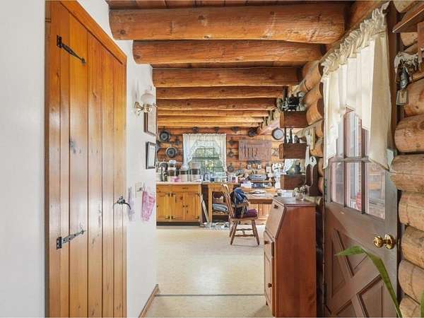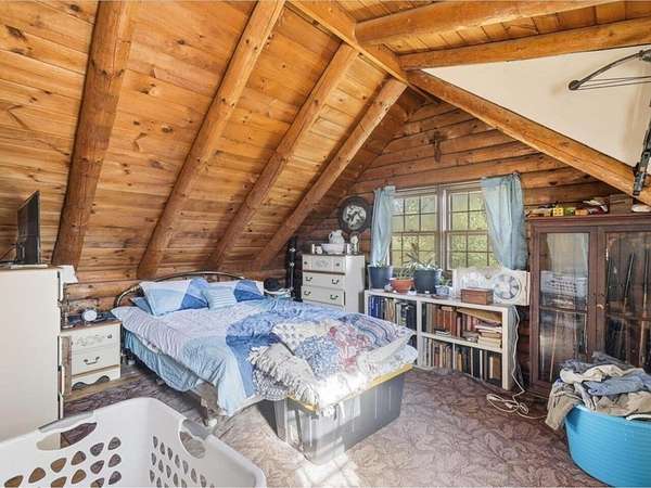 A fisherman's and boater's paradise awaits! This charming 2-bedroom, 1-bath log cabin offers deeded access to Otter Creek, just minutes from downtown Vergennes. Nestled on a beautiful 2.4-acre lot, the property includes a 2-car detached garage and plenty of space to enjoy the outdoors. The cozy 1,277 sq. ft. home features the warmth of natural wood throughout, a wood-burning fireplace, and a spacious deck off the living room - perfect for relaxing or entertaining. The roof was replaced in 2023, giving peace of mind for years to come. Located in desirable Ferrisburgh, this property sits between two of Vermont's scenic state parks and abuts 123 acres of state land, providing access to recreation, nature, and tranquility. Ideal as a year-round residence, summer retreat, or Airbnb investment, you'll love being only five miles to Kingsland Bay State Park, minutes to Lake Champlain and local boat launches, and surrounded by opportunities to fish, boat, bike, and hunt.
