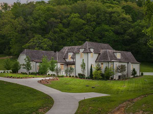 Welcome to an extraordinary private estate in picturesque Leipers Fork, masterfully crafted by the esteemed Baird Graham Builder with architectural design by the renowned Paul Bates. This European-inspired residence seamlessly blends into its breathtaking natural surroundings, with a cedar shake roof and copper accents enhancing its timeless elegance. Nestled on 8.15 pristine acres along one of Leipers Fork's most coveted roads, this exceptional home offers over 6,000 square feet of refined living space, unparalleled privacy, and sweeping countryside views.