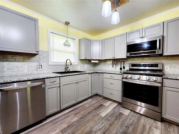 VA ASSUMABLE LOAN! This beautifully updated ranch-style home spans 2,148 square feet and is set on over 2 acres of land, featuring three generous bedrooms and two full bathrooms. The inviting layout includes a comfortable living room, a dining area, and a kitchen outfitted with stainless steel appliances. A den offers additional space for relaxation or can serve as a workout area. The oversized laundry room is equipped with a storage cabinet and accommodates a full-size washer and dryer, along with the option for a secondary refrigerator or deep freezer for convenience. The property also includes a spacious two-car garage with an attached storage room, solar power wind turbines, and it utilizes well water and propane for utilities. A notable highlight is the fully insulated 30x40 workshop, which is climate-controlled and features electric bay door openers, complemented by a mini shed for extra storage. Surrounded by mature trees, this home is just minutes from downtown and shopping, while still providing a serene country atmosphere. Also to mention you'll be less than an hours drive to Shreveport LA. Don't miss the opportunity to see this property--schedule your showing today!