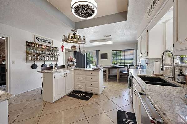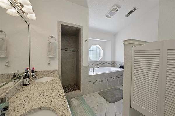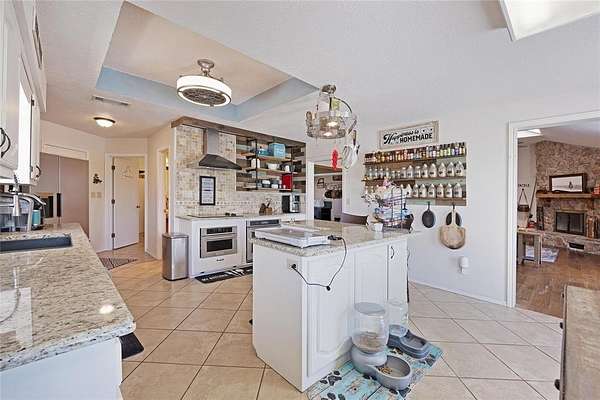 - Chandelier, Decorative Lighting, Double Vanity, Eat-In Kitchen, Granite Counters, Kitchen Island, Open Floorplan, Pantry, Sound System Wiring, Vaulted Ceiling(s), Wainscoting, Walk-In Closet(s)