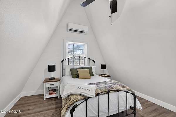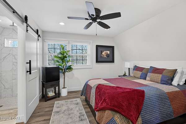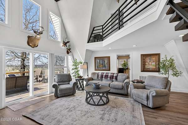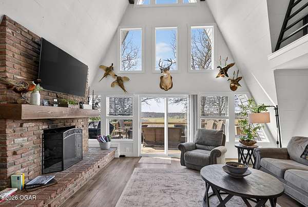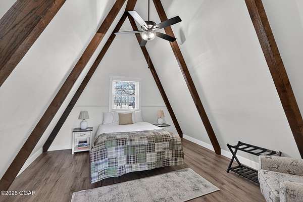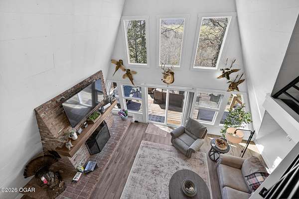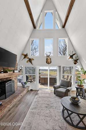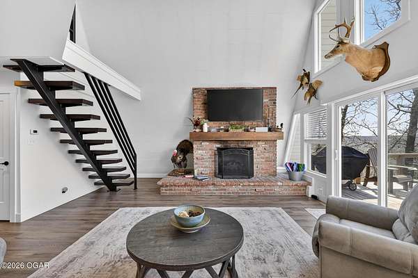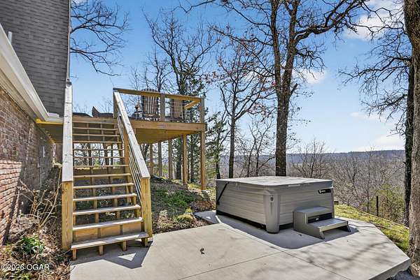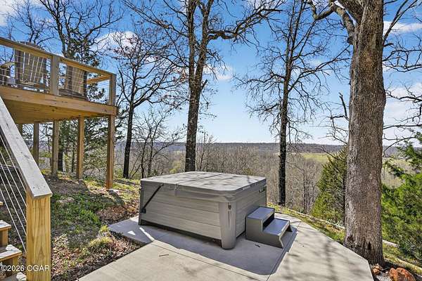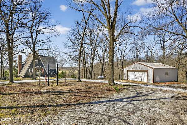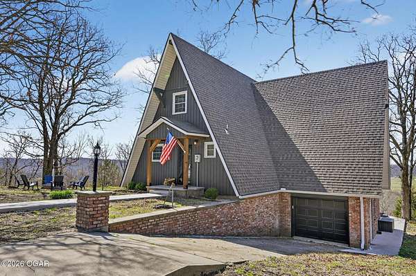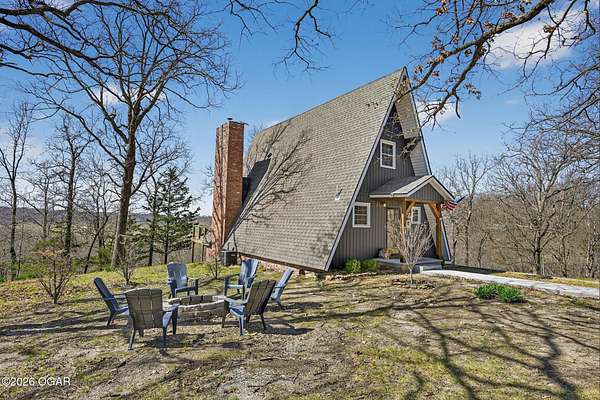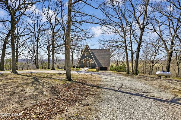Newly remodeled, cozy 3 bedroom, 2.5 bathroom A-frame home nestled on 6 wooded acres overlooking the Shoal Creek Valley. Complete renovation finished in 2025 consisting of all plumbing and plumbing fixtures including a farm-house kitchen sink, most electrical. HVAC system, frost free well head and pit less adapter, water softener, LVP flooring, roof, soffit and facia, windows, blinds, doors, trim, cabinets, granite countertops and tile backsplash, steel and wood floating stairs, steel railings, gas log fireplace, cedar mantle, deck, Hot Springs Prodigy Hot Tub(included), and Black Stainless appliances. The home has a one car attached garage and a 24' x 26' two-car detached garage, as well as a 40' x 10' machine shed.