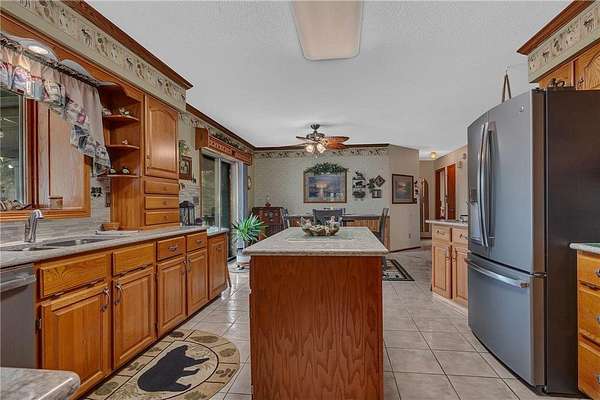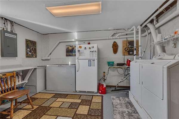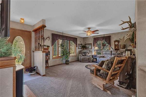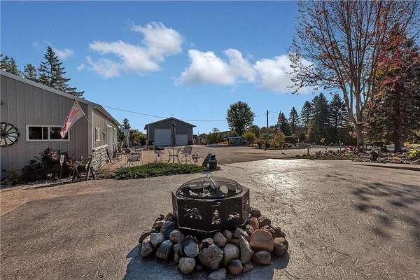 Welcome to your private slice of the countryside! This spacious 4-bedroom, 2-bath home is nestled on 4.07 beautifully wooded acres offering peace, privacy, and room to roam. Surrounded by mature trees—including several apple varieties—this property is a nature lover’s dream. The home features durable steel siding, a large deck for relaxing or entertaining, and updated windows throughout (approximately 12 years ago). Inside, you'll find a thoughtful layout with 2 bedrooms and a full bath on the upper level, and 2 more bedrooms plus a 3/4 bath on the lower level. The upper-level bath and kitchen are upgraded with Cambria countertops. Enjoy cozy gatherings in the main floor living room, while the lower level boasts a spacious family room, the oversized 3/4 bath, 2 BR's and a well-equipped laundry area complete with sink and folding counter. This property truly shines with its array of functional outbuildings: 8x12 insulated dog kennel with electricity, 28x40 detached garage, 14x22 insulated shed, and a 32x60 pole shed – ideal for equipment, storage, or hobby use. Don't forget the extra-large 30x40 stamped concrete area! Whether you're seeking a quiet country lifestyle, space for hobbies or animals, or simply room to spread out, this well-maintained property has it all!!