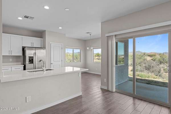 OFFERING Seller/Lender combined paid 2/1 temporary rate buydown with start rates in the 4%'s!! Welcome to this 3 bedroom, 2 bathroom home located in North Scottsdale near Carefree Highway, offering the freedom of no HOA and a peaceful desert setting. This property provides the space and flexibility that is hard to find, with room to truly make it your own. Inside, the home features an open and inviting floor plan with wood style flooring and abundant natural light throughout. The kitchen is well equipped with a large island and sink, walk-in pantry, stainless steel appliances, electric range, built-in microwave, and dishwasher. It flows seamlessly into the living and dining areas, ideal for both everyday living and entertaining. The primary suite includes a spacious walk-in closet and an en-suite bathroom with dual sink vanity, and a walk-in shower. Two additional bedrooms offer versatility for guests, a home office, or hobbies. Enjoy the quiet, open feel of North Scottsdale living with no HOA restrictions, giving you the flexibility to store toys, customize your property, and enjoy the desert lifestyle without limitations.