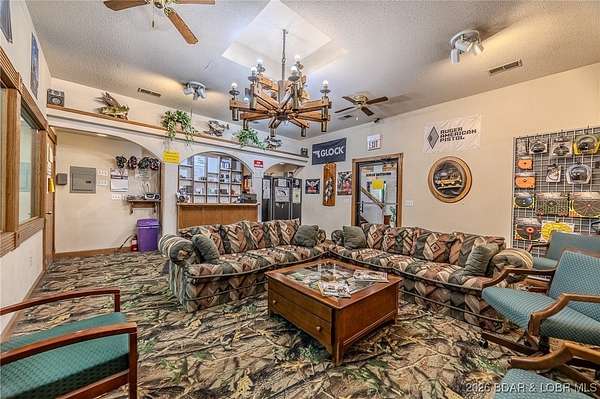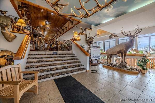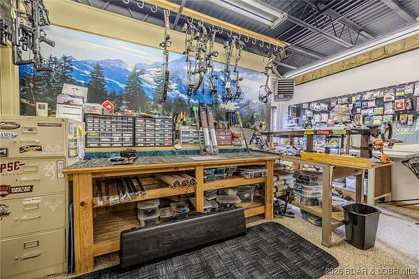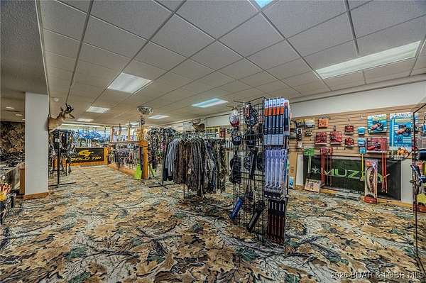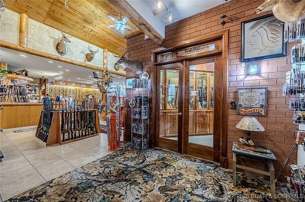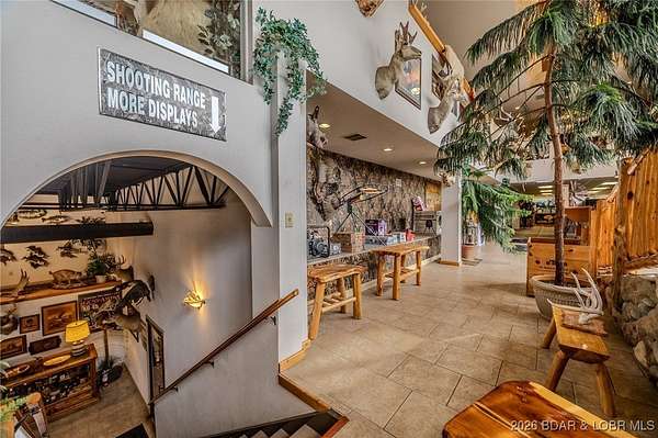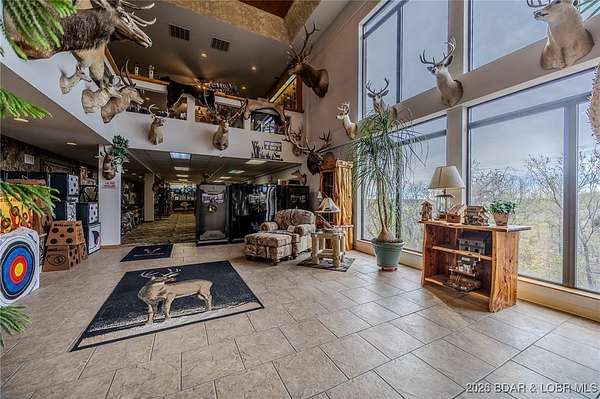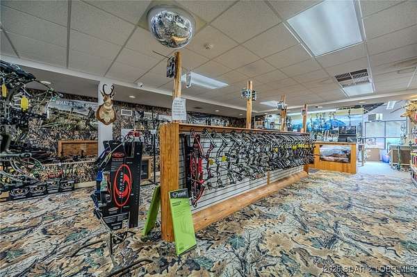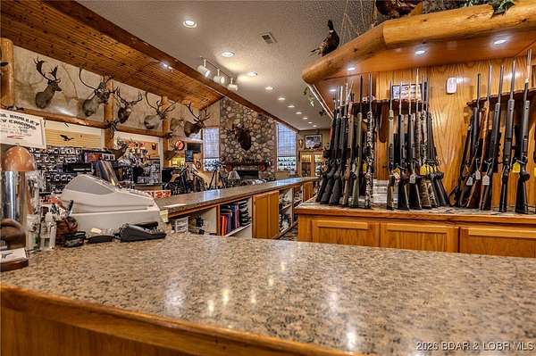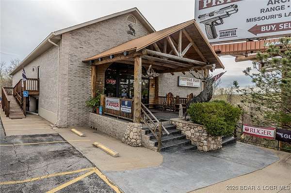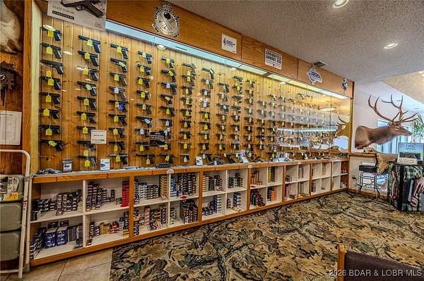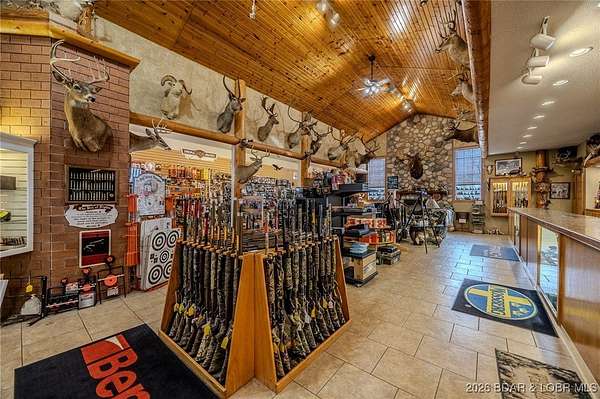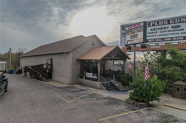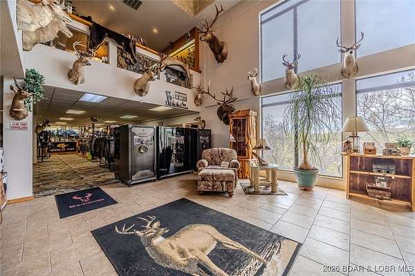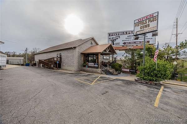 Incredible Commercial Opportunity in Prime Osage Beach Location. Upon purchase buyer will receive rights to 31 year old business name. Don't miss this rare chance to own a 15,000 sq ft commercial building and 8 unit strip mall building in one of the highest-traffic areas. This property offers endless potential & is currently outfitted for firearm and archery retail-but with its flexible layout, it's perfect for a wide range of business ventures. The main level impresses with 21-foot vaulted ceilings finished in Colorado pine, a stunning floor-to-ceiling stone gas fireplace, a spacious L-shaped service desk, office space, custom gun cases, and a dedicated gun museum. Downstairs features archery shop with large windows, a serene water feature, and a fully equipped service and repair desk. This level also features a professional indoor shooting range with six 50-foot lanes & lounge-style seating and viewing area. Whether you want to continue in retail, expand into multiple businesses, or reimagine the space entirely, the possibilities are endless. Ample parking is available to accommodate your future customers with ease. Call today to learn more about this exceptional opportunity.