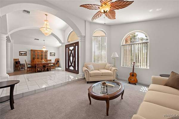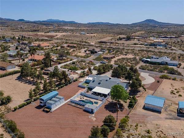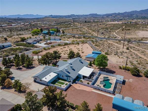 Exceptional Horse Property with Mountain Views in Kingman, Arizona--Welcome to this stunning horse property offering space, privacy, and mountain views all in a convenient Kingman location. Situated on 3.88 acres, this beautifully maintained home features 4 bedrooms and 3 and half bathrooms, thoughtfully designed for comfort and functionality. The spacious primary suite includes a private bathroom and direct access to the side patio for added privacy. A second bedroom also features its own private bath ideal for guests or multigenerational living. An oversized bonus room provides the perfect space for a game room, home office, or hobby area. The large kitchen is a chefs dream with abundant cabinetry and storage, perfect for both entertaining and everyday living. A 4-car garage and workshop offer ample room for vehicles, tools, and projects. Step outside to enjoy the upgraded back deck leading to your private pool and spa an ideal setting for relaxation or hosting gatherings. The fully fenced property also includes a newer barn with fencing, putting green, two carports for RV, boat or horse trailer parking, and three additional storage buildings. A large circular concrete driveway enhances curb appeal, while a separate drive provides easy access to the barn and backyard. Recent updates include two brand-new HVAC systems and a freshly painted exterior. Too many features to list! This home is truly move-in ready and delivers the ultimate in lifestyle living complete with modern comforts and room to grow, ride, or roam.