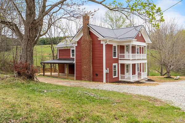 Updated Country Home and Land for Sale in Floyd County, VirginiaThis historic Floyd home has been thoughtfully renovated to blend timeless farmhouse character with modern comfort, all set on 2 beautiful acres. Original details like hardwood floors and masonry accents pair seamlessly with updates including open living spaces and noise-dampening insulation for improved energy efficiency.Step through the front door to find gleaming new hardwoods, a restored original staircase, and an inviting view of the open living and dining areas. The kitchen features new cabinetry, granite countertops, and a tile backsplash, and it flows effortlessly onto a covered deck—perfect for outdoor dining and relaxing. The main level also includes a bedroom, a full bathroom with laundry, and a pantry for additional storage.Upstairs, you’ll find refinished original hardwood floors in the hallway and access to a charming balcony. The spacious primary suite offers a beautifully designed bathroom complete with a custom tile shower and soaking tub. Two additional large bedrooms and a third full bathroom provide plenty of space for family or guests.