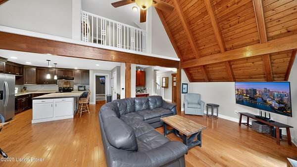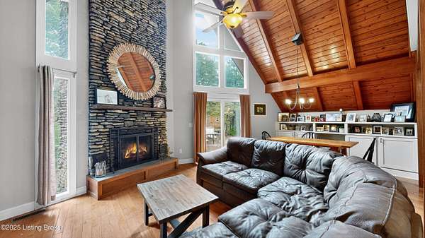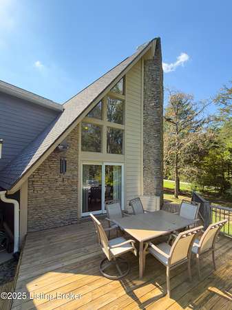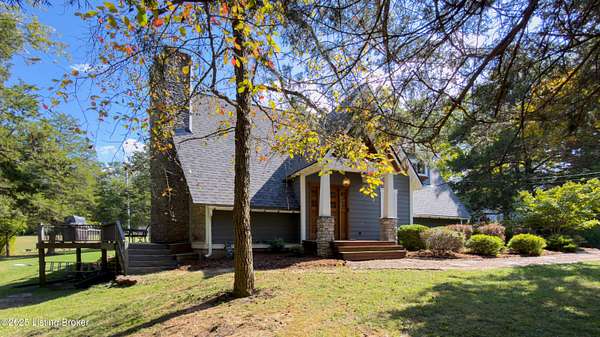 This stunning and one-of-a-kind A-frame home sits on 1.6 acres of beautiful land, offering the perfect blend of character and functionality. Inside, you'll find vaulted ceilings with exposed wood beams and an open floor plan where the second floor overlooks the spacious family room. The first-floor primary suite, large dining area, and fabulous mudroom off the garage provide both comfort and convenience. Step outside and enjoy the backyard designed for true outdoor living-featuring a large deck off the dining room, a covered patio, fire pit area, swing set, and plenty of open space for soccer, baseball, or simply relaxing. Kids (and adults!) will love the treehouse, complete with electricity. Additional highlights include: New roof Freshly painted exterior Covered patio Versatile outdoor play and entertaining areas A must-see property with endless possibilities for living and entertaining!