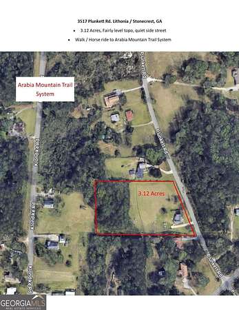 Discover the potential of this rare 3.12-acre parcel, perfectly situated just minutes from the scenic Arabia Mountain Trail System and Nature Preserve. Whether you're dreaming of creating a secluded private oasis or developing multiple homes in a sought-after equestrian-friendly area, this property offers endless possibilities. The existing home has solid bones and is ready for your vision and updates. With a fairly level topography and a wooded rear, the land provides natural privacy and a tranquil setting - ideal for an equestrian estate or a small community of homes with shared paddocks. Enjoy the peace of country living with the convenience of nearby shopping, dining, and amenities. This is your chance to own a versatile property in an exceptional location.