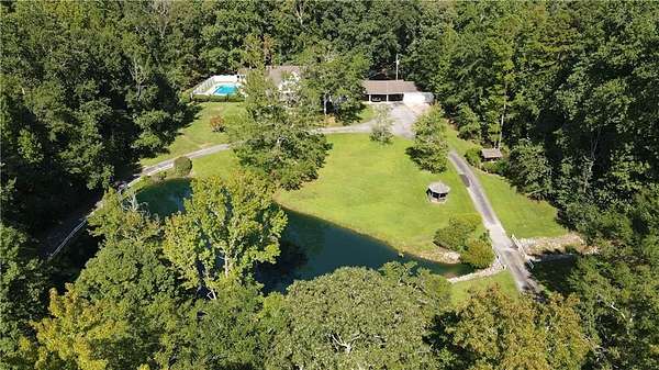 Most people can only dream about a palatial place like this on 5 acres with all the southern charm one can imagine. Just driving in on the circular driveway rounding a beautiful pond and a landscape that is to die for. As you look closer at this property you see a Southern style home with with wrap around porches that face the pond and covered back porches that overlook the private back yard. This home has a 3 bay carport as well as a two car garage. Upon closer inspection one notices a gorgeous salt water pool with separate pool house with full bath and sauna; a pole barn with 3 bays to accommodate a camper/ATV, and an additional workshop with garage door and spacious fenced area for dogs. Moving into the main level on finds a guest bedroom and bath; living room; formal dining room; keeping room and bonus room. The master bedroom is huge with recessed lighting, extra windows, sitting area, walk in closet, private bath, step in shower, jetted tub, double sink vanity & toilet closet. There are additional bedrooms on the second level all with vaulted ceilings providing great light. Stepping into the kitchen one will be awed: sit down bar, roomy pantry , serving bar, window over the sink, breakfast nook, keeping room and all stainless appliances. Laundry room plumbed for a sink and has a laundry chute from the second floor. This home is blessed with tons of storage. Two new HVAC units, new water heater, roof replaced in 2010. This place is to die for; take a look.