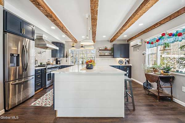 Presenting 352 Main Street, Schoharie A Rare Historic Opportunity.Offered for only the third time in its history, this remarkable home has been lovingly maintained by just two owners over the years. Now, the opportunity is yours to become the next steward of this truly special property.Perched gracefully on a hill, this stunning 7-bedroom, 2.5-bath residence blends historic charm with extensive modern upgrades. The heart of the home is a chef's kitchen featuring a coveted pot filler, Kitchen Aid cabinet with lift, ample cabinetry, and thoughtful design for everyday living and entertaining alike.The spacious family room, open to the living and dining areas, showcases a fireplace and wet bar, creating the perfect setting for holiday gatherings and memorable celebrations. For those seeking multi-generational living, this home delivers with a large first-floor bedroom and a carriage barn that offers an easy conversion to an accessory dwelling unit. Significant upgrades provide peace of mind, including new siding, windows, hot water heater, updated kitchen, electric and plumbing, blown-in attic insulation, insulated basement rim joists, and more.Outside, the property truly shines. Enjoy a stamped concrete patio ideal for firepit nights and social gatherings, a brand-new above-ground pool with deck, and approximately 2 acres of land with a fully fenced perimeter surrounding 4 outbuildings , storage shed, barn used as a woodshop &A heated and air-conditioned carriage barn with electric, an insulated second floor, and a fully functioning golf simulator (available for purchase) and the old stone building in front. We have raised garden beds, a circular driveway, mountain views, and a charming mini orchard producing apples, plums, pears, peaches, and grapes. An exceptional feature is the school directly accessible from the backyard. Simply open the rear gate and walk safely to school. If you thought you couldn't have it all think again. This historic stunner is priced to se
