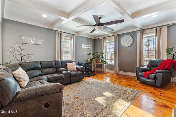 Presenting 352 Main Street, Schoharie a rare historic offering available for only the third time. Perched on a hill, this 7-bedroom, 2.5-bath home blends timeless charm with extensive modern upgrades. The chef's kitchen features a pot filler, Kitchen Aid cabinet lift, and ample cabinetry, opening to spacious living, dining, and family rooms with fireplace and wet bar ideal for gatherings. A first-floor bedroom and carriage barn offer excellent multi-generational or ADU potential. Major updates include siding, windows, electric, plumbing, insulation, hot water heater, and more. Set on approx. 2 acres with stamped patio, firepit area, above-ground pool with deck, fenced yard, circular drive, mountain views, gardens, mini orchard, and multiple outbuildings including a heated carriage barn. The original stone building on Main Street offers an exciting renovation opportunity and potential for a home-based business or income use. Walk to school from your backyard gate. Village location, not in flood zone, with endless potential for rental, B&B, or business use. Prime village location with significant potential for future growth and income opportunities Or maybe your dream is to own a truly grand and spectacular home rich in history and charm. This is a must tour property.