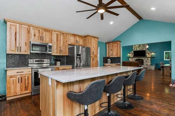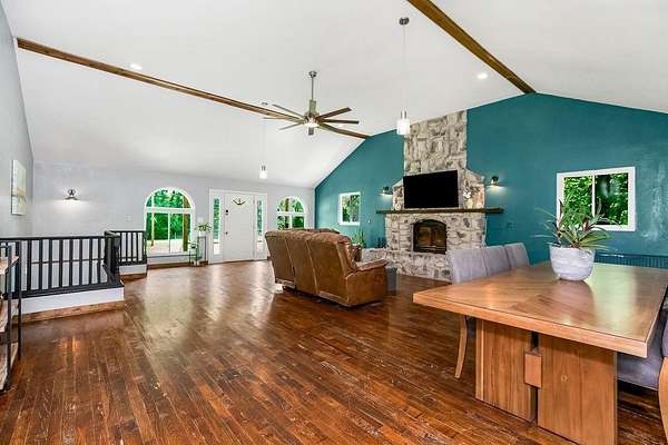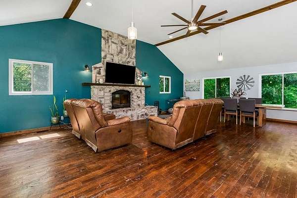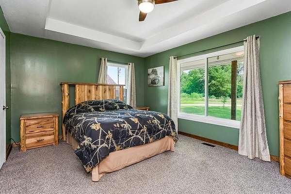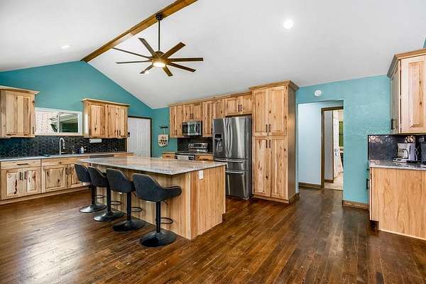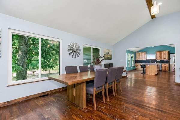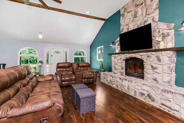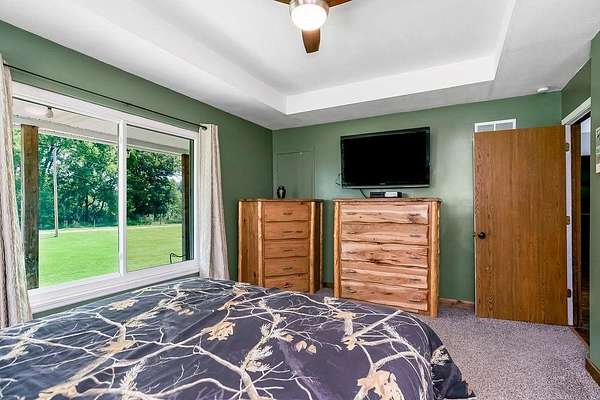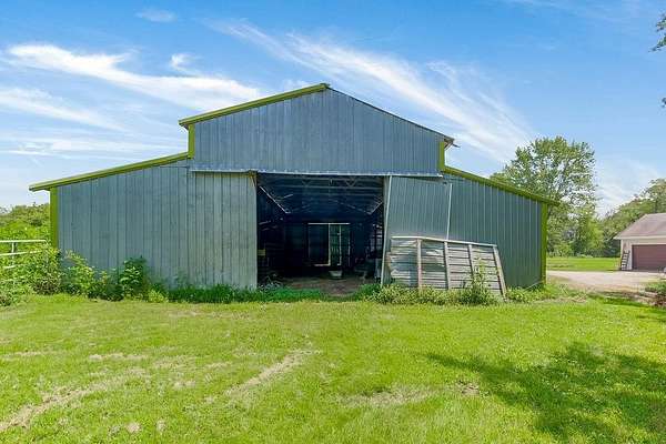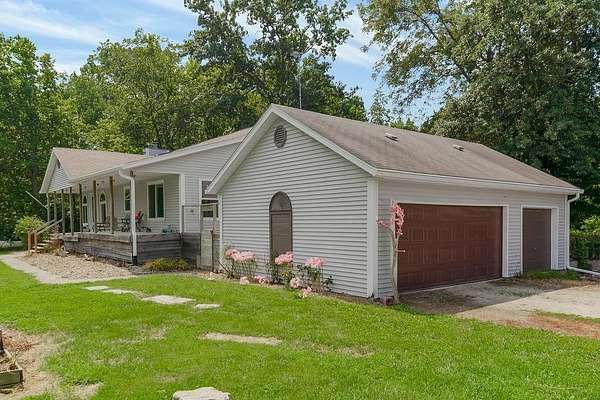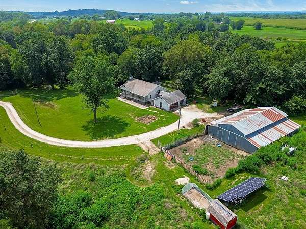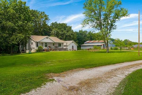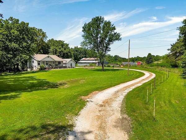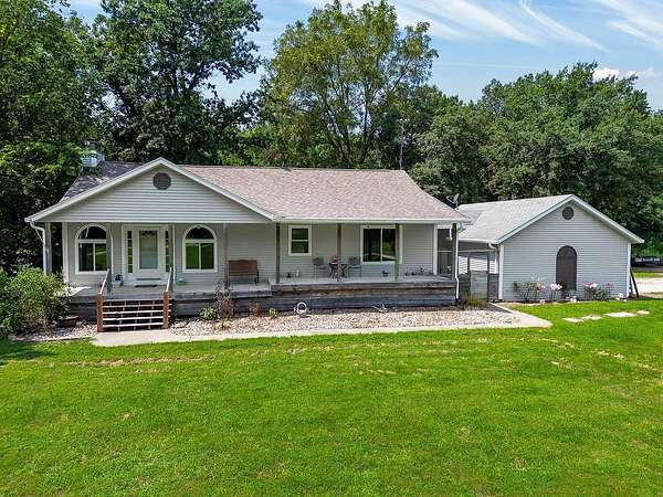 Set on 21 picturesque acres with a private pond, this 3-bedroom, 2-bathroom home (plus a 4th non-conforming bedroom) blends modern updates with timeless country charm. The main-level master suite features a tray ceiling, while the vaulted living room showcases wood accents, a stone fireplace, and expansive windows that flood the space with natural light. Gorgeous hardwood floors flow into the updated kitchen, complete with abundant storage, stainless steel appliances, an island, and a walk-in pantry. Energy efficiency shines here with 18 solar panels keeping the electric bill around $7/month, a brand-new furnace, new windows throughout, K-Guard gutters, and a whole-house generator for peace of mind. The walkout basement offers stylish sliding barn doors, plenty of sunlight, and direct access to the shady patio. Enjoy the breezeway connection to the oversized 3-car garage, a rebuilt chicken coop, and a deck that partially wraps around the home--perfect for soaking in the serene views. Whether you dream of being a hobby farmer, keeping animals, or simply enjoying wide-open spaces, this property offers privacy, functionality, and a touch of self-sustainability, all just a short drive to town.