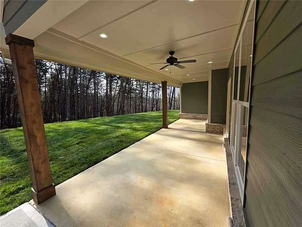 Amazing New Construction Home! Welcome Home!! As you enter this 3 bedroom, 2 1/2 bath, new construction home you are greeted with 10 foot high ceilings in the main living area and an open kitchen/dining/living area. The kitchen is complete solid wood cabinetry with soft-close doors, granite countertops, a huge center island big enough for all of your entertaining needs, and stainless steel appliances. The living room has a wood burning fireplace and patio doors leading out to a large covered porch with enough can lights to set the mood no matter the occasion. The master bedroom has 9 ft ceilings and enters into a master bath with a large double vanity area and a large custom tile shower with a frameless glass door. The master closet is basically another bedroom with endless storage and possibilities. Stylish LVP flooring throughout the entire home. Spray foam insulation in the attic for maximum energy efficiency. The exterior has a Board and Batten front with lap siding around the sides and back, a covered front porch as well as a huge back patio. This home is currently under construction but is planned to be finished March 2026. The pictures shown are of the same plan built in the same neighborhood.