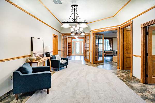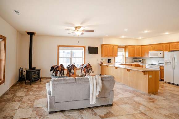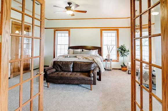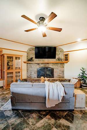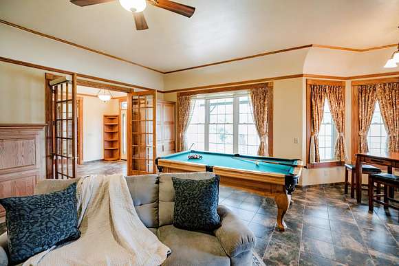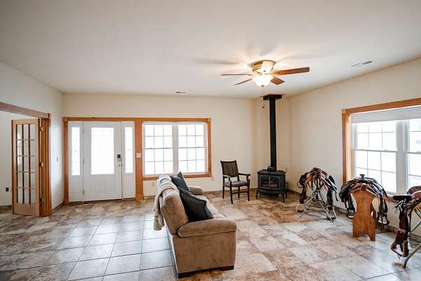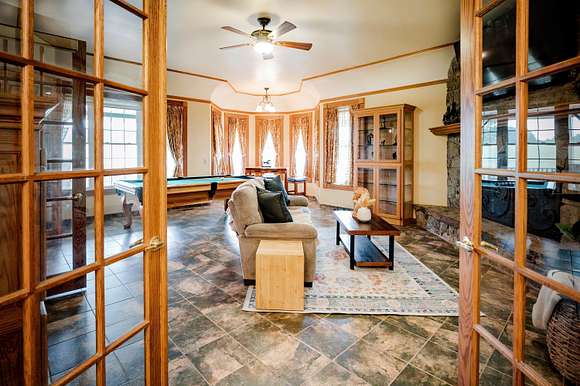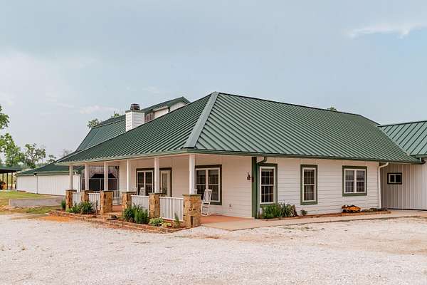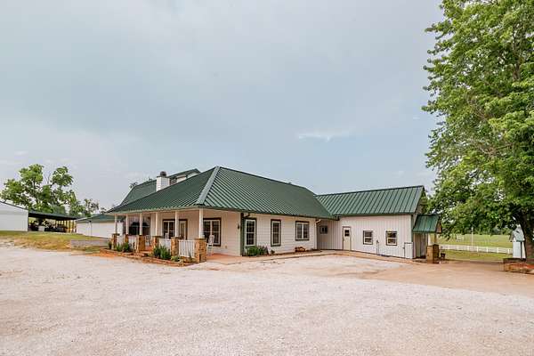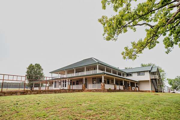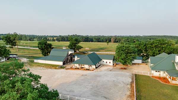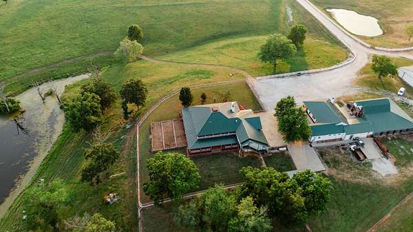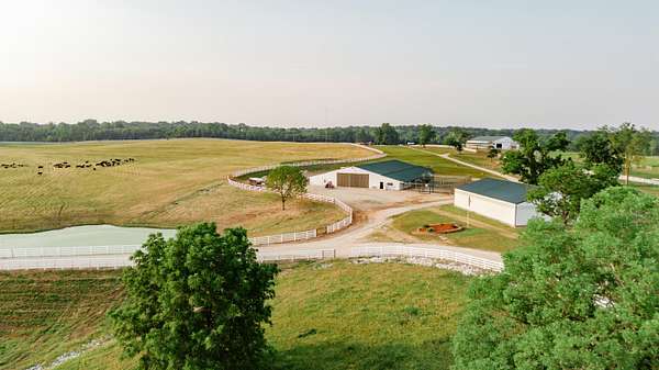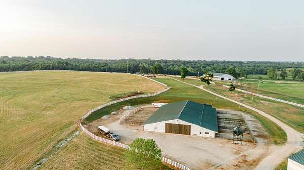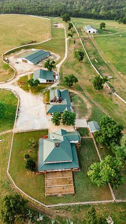 Welcome to your equestrian dream property in Southwest Missouri! Spanning 182 rolling acres, this extraordinary estate combines luxury living with premier horse facilities, just under an hour from Springfield.The custom-built main home offers 6 bedrooms and 6 bathrooms, designed for comfort and flexibility. Its spacious layout can easily be divided into two living areas, ideal for guests or multi-generational use. The main-level master suite provides a private retreat, and the family room features a stunning wood-burning rock fireplace. The main floor is fully handicap accessible with wide automatic doors and a roll-in shower. Enjoy panoramic views and breathtaking sunsets from the wraparound covered porches on both levels.The property's highlight is a state of the art indoor riding arena the 'Cadillac' of equestrian facilities. It includes 17 stalls with individual turnouts, heated wash bay, LED lighting, an office, a bath, and large sliding doors on both ends. Perfect for professional equestrians or passionate horse owners.Additional features include a secondary home, a large hay barn with lean-to, a shop with an attached ranch office, and a partial under roof working facility with a loafing shed. The acreage is fenced with white vinyl and no climb woven wire and features multiple paddocks with a rotational grazing system. Water is plentiful, with ponds and wet-weather creeks throughout the property.This one-of-a-kind Southwest Missouri horse ranch offers exceptional space, function, and comfort the perfect balance of country living and modern amenities.