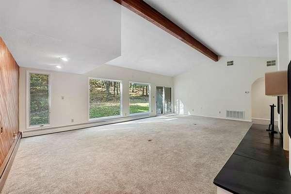 Discover privacy and charm in this custom-built home featuring unique architectural character. Tucked away, yet conveniently located just minutes from schools and shopping, this property offers the best of both worlds--peaceful country living with easy access to town. Inside are vaulted ceilings & expansive windows that flood the home with light, showcasing the fireplace & wood panelled wall. The freshly painted interior creates a bright atmosphere throughout. The primary bedroom features a custom built-in dresser & matching closet system. Find brand-new carpeting in the bedrooms for added comfort. Recent upgrades include many new replacement windows (October 2025), a whole-house generator for peace of mind, and new water softener (2025). While the home offers solid bones and character, it presents an exciting opportunity to add your own modern touches, providing endless potential with room to personalize. Don't miss this rare Vestal retreat--privacy, potential, and proximity all in one.