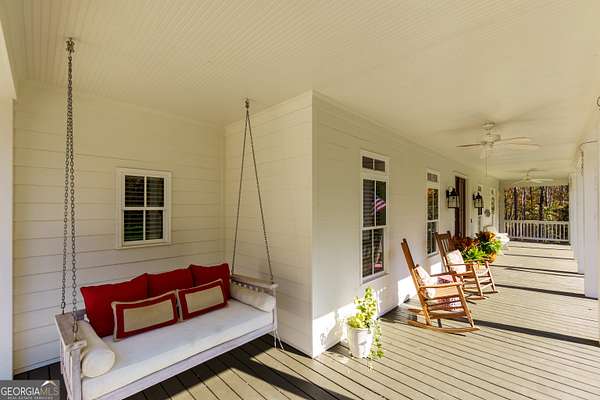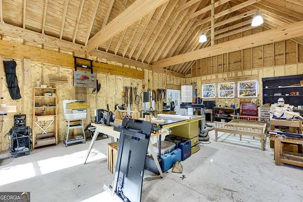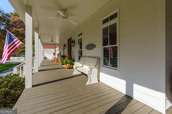 5 Acres. Farmhouse. Hobby Farm. Privacy. Chef's Kitchen. Finished Basement. Workshop. Creek. No HOA. This beautiful 9-year-old farmhouse was designed with the timeless charm of a century-old home and is filled with natural light throughout. Enjoy wood floors, a warm living room with a wood-burning fireplace, and a true chef's kitchen with KitchenAid appliances, a six-burner gas cooktop, double ovens, quartz countertops, and an oversized island. Outdoor living shines with a wraparound porch, rocking-chair front porch, screened porch, and a large back deck overlooking a private setting surrounded by mature hardwoods, with room to create additional usable spaces. Main-level bedroom with en-suite bath and separate access for guests. Upstairs, the primary suite features a board and batten accent wall, large walk-in closet, dual vanities with limestone counters, a separate custom makeup vanity, and a spacious tiled shower, plus two secondary bedrooms and a full shower/tub combo with quartz countertops. The finished basement offers a full kitchen with/quartz countertops, full bath, living space, excellent storage, and a 5th-bedroom option (currently used as an office)-ideal for guests, teens, extended family, or remote work. Outside: raised gardens, 8'x10' chicken coop, 19'x10' animal shelter, 16'x24' storage barn, parking pad behind the barn, and a detached garage w/attached 22'x36' workshop. The approx. 1/4-mile horse path also serves as a scenic walking trail. A rare 5-acre lifestyle property.