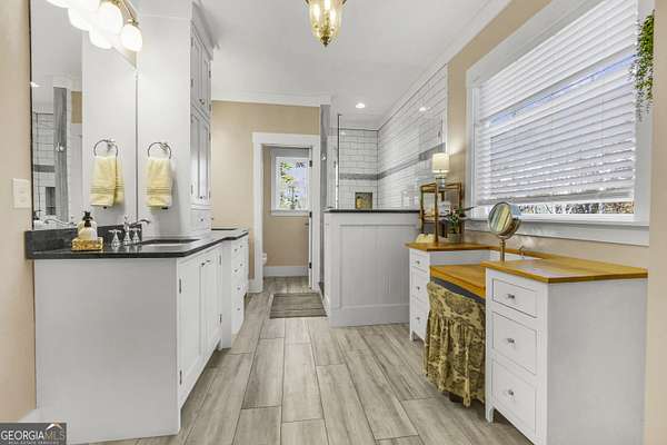 - Central Vacuum, Double Vanity, High Ceilings, Separate Shower, Tile Bath, Tray Ceiling(s), Walk-In Closet(s)