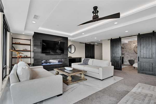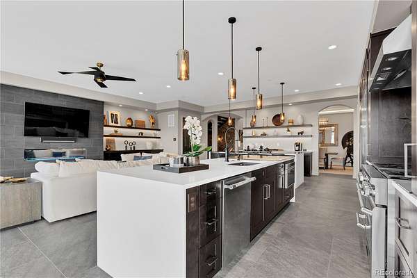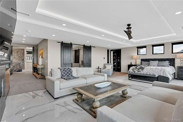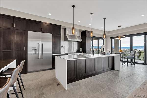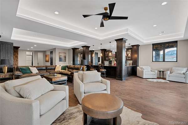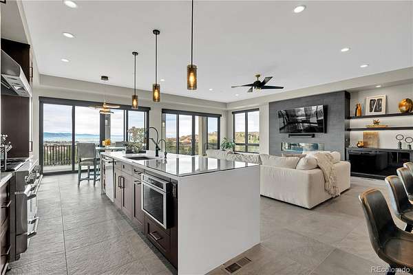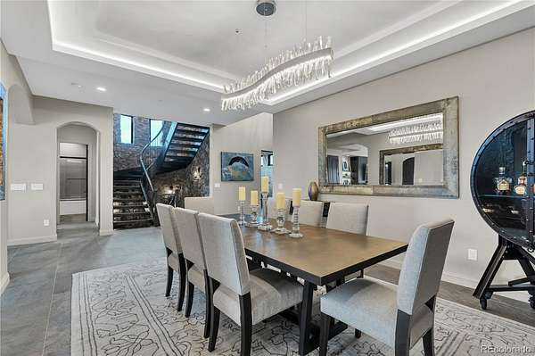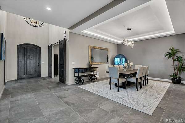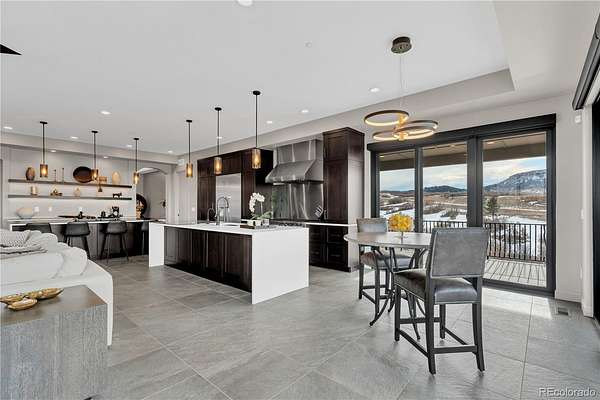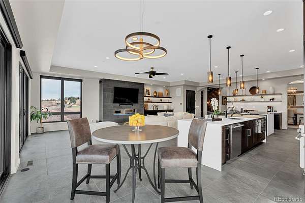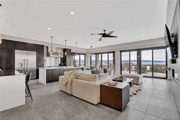 Discover Colorado luxury living on over 21 acres in Keene Ranch with this custom 2019 mountain-contemporary estate offering exceptional privacy, expansive views, and refined indoor-outdoor living. A gated entrance leads to soaring ceilings, a grand open layout, and a chef’s kitchen with dual oversized islands, high-end appliances, and multi-slide doors opening to a covered deck.