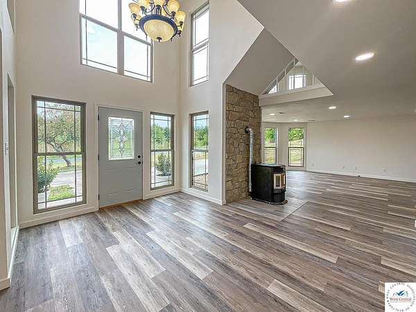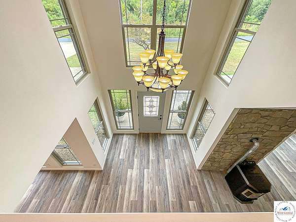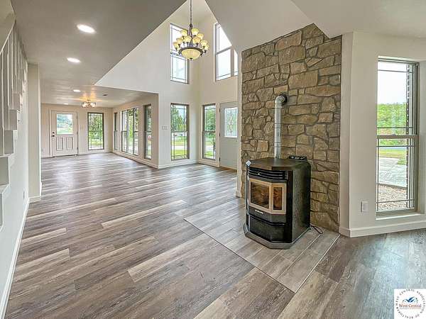 This Impressive Estate has been Completely renovated and is Ready to be your Dream Home! Offering over 3,700 SF of living space and an abundance of natural light. Grand Entry foyer with chandelier, Large living room with panoramic windows and pellet stove. Spacious eat in kitchen with New cabinets, stainless steel appliances, island with butcher block counter and walk in pantry. 3 Bedrooms on the first level, all with ceiling fans. Full bathroom with tub/shower and laundry/mudroom, leading to attached garage. Breathtaking second level, offers an oversized family room, panoramic views, 16' high cathedral ceilings, year round Sun Room with tiled floors. Second floor also features an office, large master bedroom with 16' tall ceilings, walk in closet and a Spacious full bathroom nearby with tub/shower and double vanity. All electric home with central heating/cooling system and mini split heat pumps for extra comfort. Renovations includes all new thermal pane windows, new flooring, new trim, new Kitchen and Bathrooms, new light fixtures, plumbing fixtures, exterior doors, interior doors and more!!! Extra deep detached garage (30'x48') with 2 doors, parking capacity for 4 vehicles and additional storage space on the upper level. Located just outside the city limits, with easy access to South 65 Hwy and part of Skyline school district.