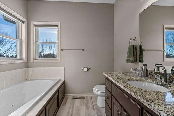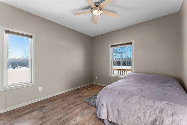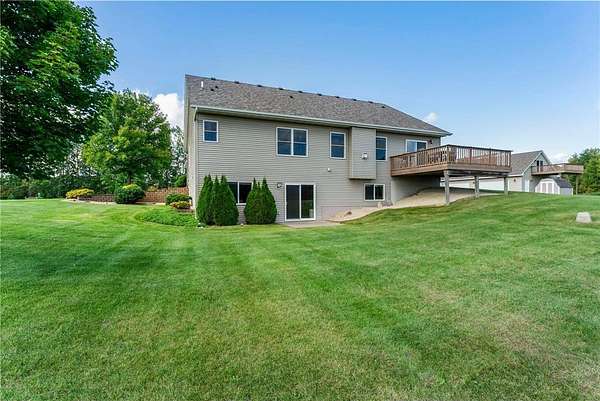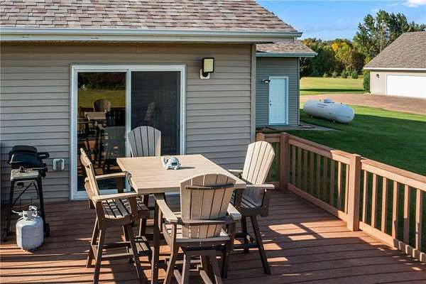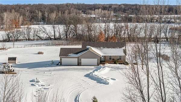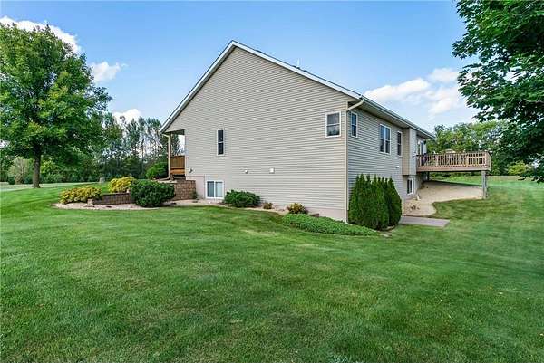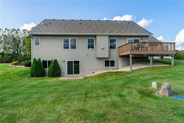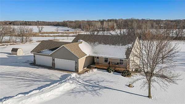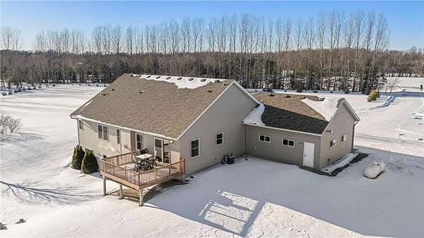 Welcome to this beautiful one owner home. This is the first time that this custom built rambler has been on the market. Located in a quiet neighborhood on a cul-de-sac at the end of a dead-end road, this property boasts a pond that is perfect for ice-skaing in the winter as well as a great place to snowmobile. Horses are allowed on this 9.5 acre parcel and there are lots of trees around the perimeter of the property for privacy as well as maintained walking trails as the current homeowner has kept the trees trimmed. Located within five minutes of town; this home is as conveniently located as it is private. The sellers have truly enjoyed their home and have kept it well maintained. There is a brand new roof installed on the house and the detached garage in 2023. The 50x29.5 detached stick built garage has a 15x50 storage loft with a patio door and a composite deck off the loft; which is a great place to sit and look out over the property as you watch the wildlife walk through or land on the pond. This is a great migration route for eagles, swans, geese and sandhill cranes. The country style covered front porch is also a great place to sit; especially during calm summer rains and the maintenance free composite deck off the back of the house is also a great place to enjoy a cup of coffee or watch the sunset. The attached four stall garage is insulated, sheet rocked & heated and new insulated garage doors that are each 8'x18' and a new service door were installed in 2023 as well. Both the house and the detached garage have 200 amp service and the house also has zoned heating with a separate thermostate in the lower level from the upper level. Enjoy main level living with laundry in the mudroom off the kitchen and garage as well as a main level primary bedroom suite with a walk-in closet and a private bathroom with a jetted tub and separate shower. Beautiful open floor plan with neutral colors, recessed lighting, LVP flooring, hardwood floors, stainless steel appliances and granite counter tops in the kitchen. Cozy up next to the fireplace in the main level and enjoy the space the lower level family room offers as well as the extra head room with 8 foot ceilings. Walk-out lower level, solid six panel wood doors upstairs and pine doors in the lower level. Lots of storage space in the house and in the detached garage. This property offers plenty of indoor and outdoor space as well as spaces to sit, relax and enjoy the natural setting. Welcome Home!