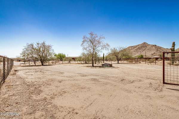 No HOA! Own a slice of paradise with this fully fenced 1.66 acre horse-friendly estate, complete with dual gated access! A grand circular drive and 3 car garage welcome you home. Inside, vaulted ceilings and tile floors lead to a spacious great room with a cozy fireplace. The kitchen features stainless steel appliances, granite counters, walk-in pantry, and an island with breakfast bar. The oversized primary suite offers backyard access and a spa-like bath with dual sinks, soaking tub, glass shower, and walk-in closet. The spacious secondary bedrooms share a Jack & Jill bathroom. A versatile den adds space for an office, studio, or guests. Step outside to breathtaking mountain views, a covered patio, and plenty of room for horses. Imagine the endless possibilities for your dream backyard. Convenient to San Tan Regional Park, shopping, dining, and entertainment. San Tan Flats is a stone throw away. Space, function, and freedomit's all here!