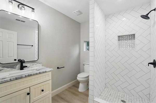 Enjoy high-end upgrades throughout, including stone countertops, new flooring, updated bathrooms, fresh paint, modern lighting, new roof, gutters, walkways, parking, water heater, and one new HVAC unit.