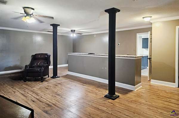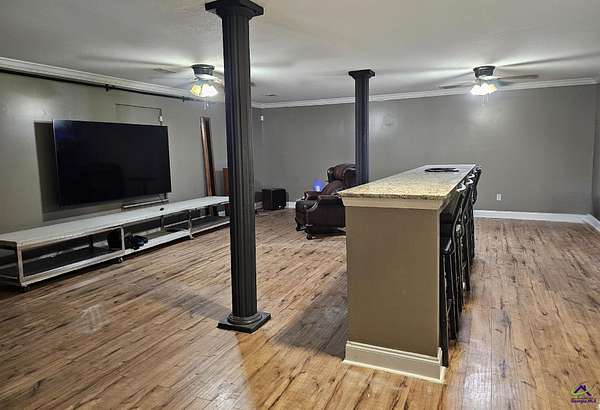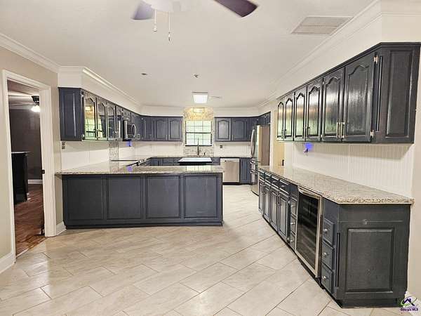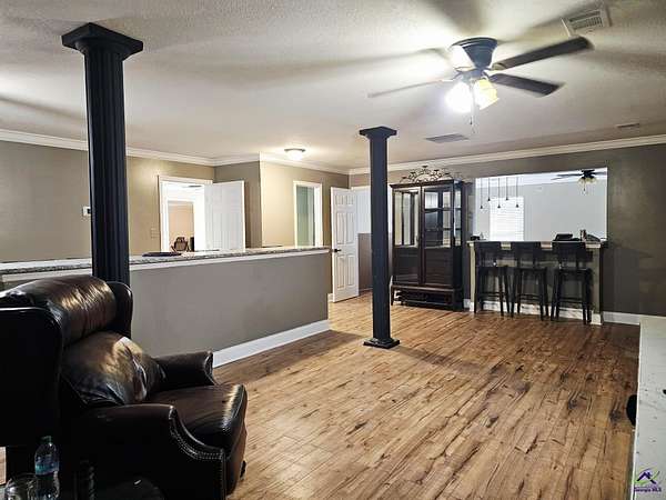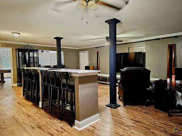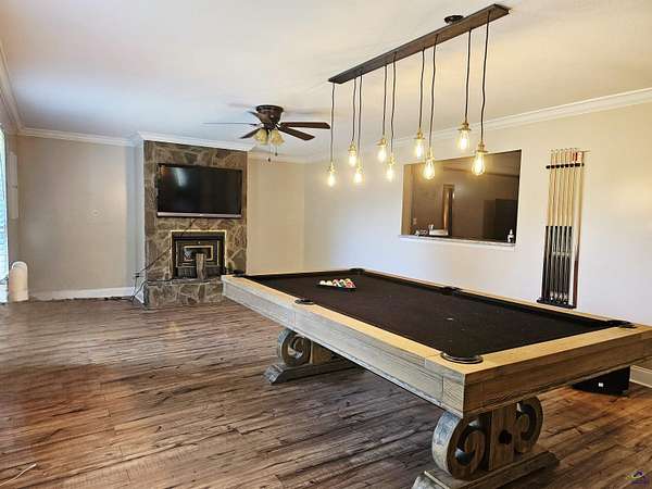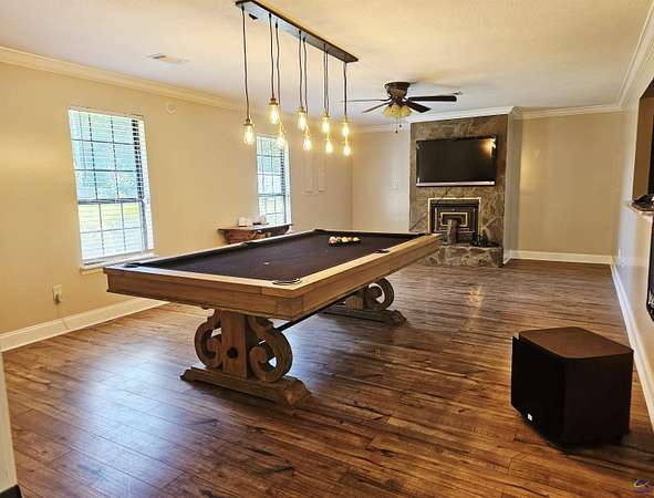 Spacious 1.5-story brick estate home on 3.25 private acres offering 4,416 sq ft of living space. This well-maintained, move-in ready home features a 3-car garage, updated flooring throughout, updated HVAC systems, and numerous upgrades. The spacious kitchen offers abundant cabinetry, bar seating, a wine cooler, and like-new appliances —perfect for entertaining. The owner’s suite is a true retreat with a sitting area and fireplace, plus a spa-like ensuite bath featuring a soaking tub, waterfall faucet, separate tiled shower, and large walk-in closet. Enjoy a game room with wood-burning fireplace and a media/entertainment room with a movable bar. Formal dining and living rooms provide elegant spaces for gatherings, along with a flex room ideal for a home office or study. Three upstairs bedrooms and two full baths; upstairs landing with a balcony. Expansive outdoor space offers privacy and room to relax or entertain. A rare opportunity combining space, comfort, and modern upgrades ideal as a private retreat or entertainer’s dream. Call and schedule your showing today!