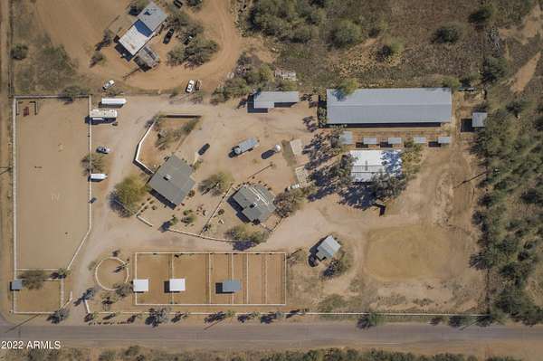 Unique opportunity for horse and equestrian lovers to Build your dreams and take advantage of this extremely rare Property that has been in continuous operation since the 1960's. Must ask your agent or Listing agent for info on appointments. Property consists of one 1,300 sq ft 3 bed/1 bath home, one 1,100 sq ft 2 bed/2bath home, one 500 sq ft casita with bath and kitchen. One Mare Motel with twenty plus15x15 stalls, one show barn with box stalls & two tack rooms. A 96' x 200' arena with other uses, 40' round pen. 6 large runs, 2 with shade. Situated on 4.31 acres with private water company, and an existing in-active private well on the property. Facility is in excellent condition and ready for new owner to take the Property to the next level. Buyer to verify all pertinent info.