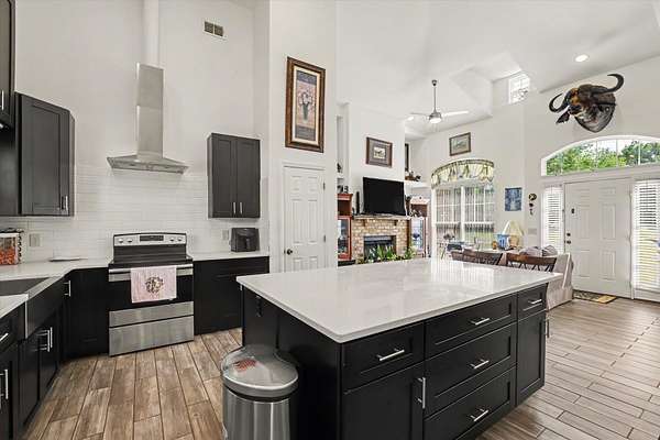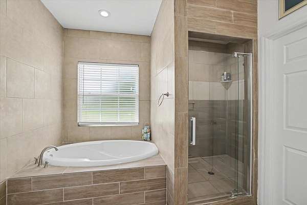 - High Ceilings, Split Bedrooms, Stall Shower, Tray Ceilings, Vaulted Ceilings, Walk In Closets, Window Treatments