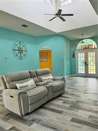 Below appraised value and all Uplands! This inviting Florida-style home with its front open Southern porch offers the perfect blend of comfort, style, and sustainability. With 3 spacious bedrooms and 2 updated baths, the open floorplan creates a seamless flow from room to room ideal for both relaxing and entertaining. The fully remodeled kitchen is a showstopper, featuring sleek finishes, modern appliances, and ample space for culinary creativity. Thanks to the homes 10-kilowatt solar panel system with inverter conversion and generator capability, you'll enjoy impressively low electric bills, and surge protection, making this residence as efficient as it is elegant along with giving you peace of mind during those Florida storms. Another savings is that this structure does not require flood insurance and has Hardie Board siding. (A low maintenance siding composed of cement, sand, water, and cellulose fibers and is engineered to be resistant to fire, rot, pests, and harsh weather conditions.) Set on a generous 2.73-acres lot, the property opens up a world of possibilities from organic gardening and equestrian use, to building a guest house, planting a fruit tree oasis, or designing a custom pool and outdoor retreat. Whether you're looking to cultivate a sustainable lifestyle or create a private haven for entertaining and relaxation, this land offers the freedom to bring your vision to life. Located just minutes from Naples, beautiful beaches, upscale shopping, and fine dining, this home combines eco-conscious living with the best of Florida's coastal charm.