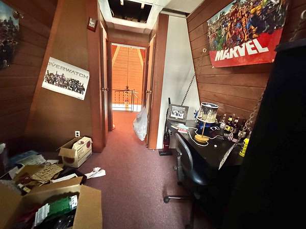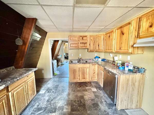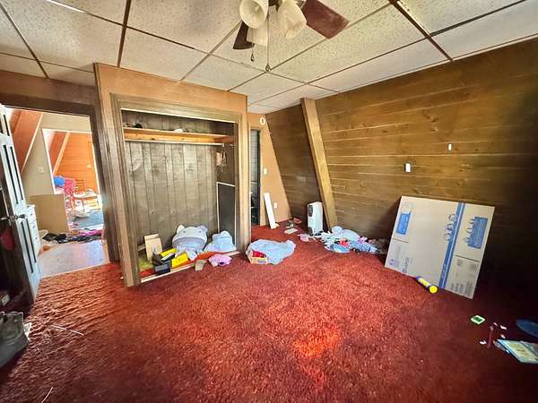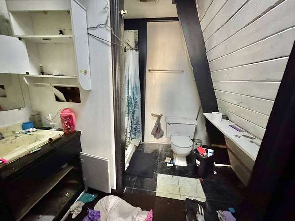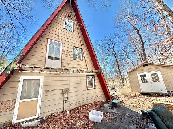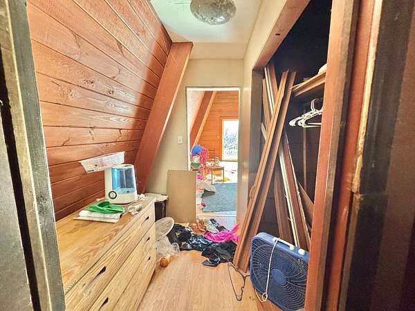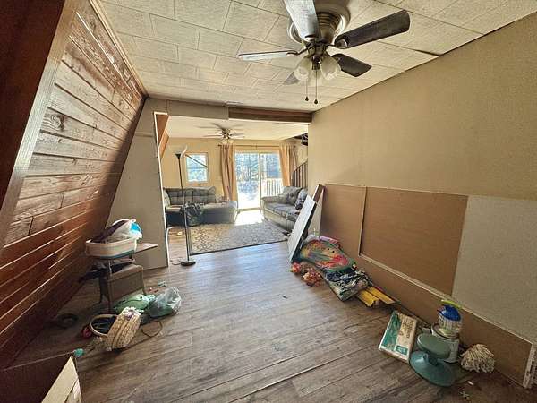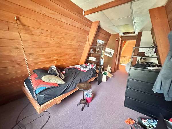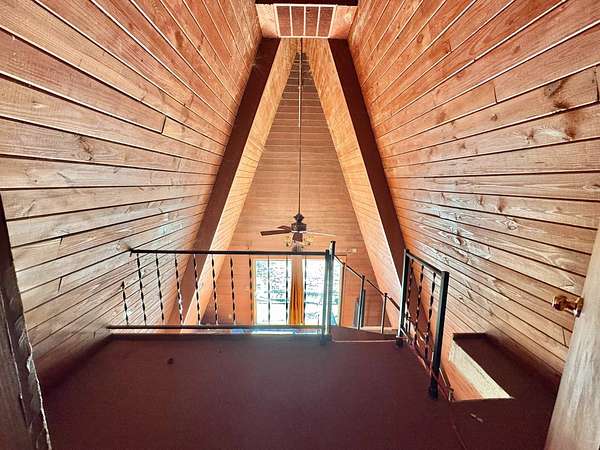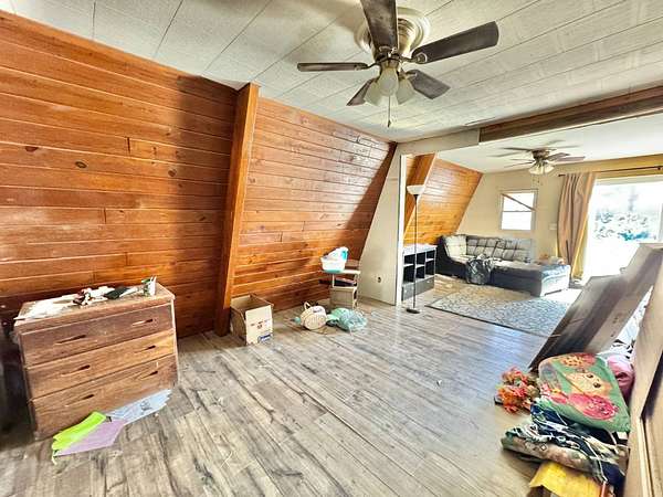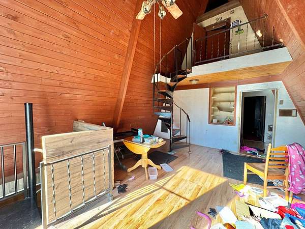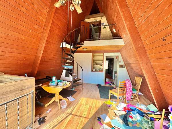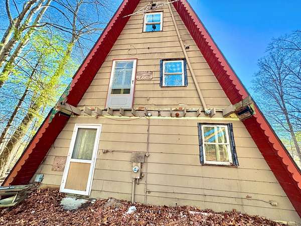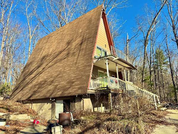 3 levels of living with this 3 Bedroom, 2 full bath A-frame home on 1.83 fenced acres in Draper. The home has lots of room with the main level of the home having the kitchen with hickory cabinetry, large living/dining space, primary bedroom option 1 with its own full ensuite bathroom. The second level has another living space with recessed display shelving, a large hallway with closet space leading into primary bedroom option 2 with its own ensuite full bathroom and 2 more closets. The third level is a small loft, great for a reading nook, and bedroom option 3, with 2 closets a fold down bed and fold down desk giving a creative way to utilize the space and give ample room for storage. Out back you have a concrete patio overlooking the woods in the back of the property, and out front there is a covered porch overlooking the front that is mostly clear with a few trees and bamboo. Keep in mind, this home needs some TLC and the best/safest entrance is in the back patio. All showings should be agent accompanied and seller or listing brokerage is not responsible for any injury occuring on or within the property.