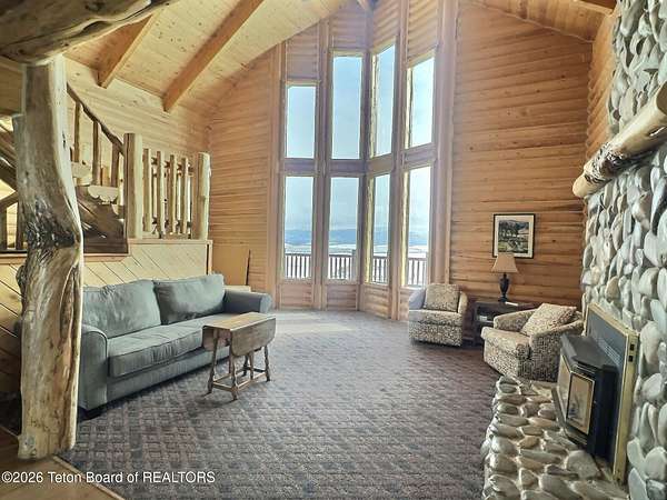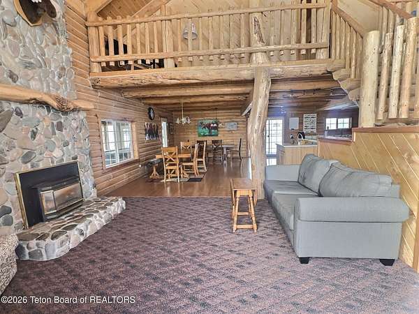Discover an extraordinary opportunity to own a piece of Idaho's most spectacular landscape. This exquisite log home, set on a remarkable 10 acres, offers an idyllic retreat with unobstructed Grand Teton views from nearly every vantage point. The heart of this home is its magnificent open great room, featuring dramatic two-story windows that draw the eye to the iconic mountains. With 4 spacious bedrooms, there's room for everyone, plus a dedicated sunroom complete with a hot tub - perfect for relaxation after a day exploring. Outdoor living is a dream, with an east-facing front deck overlooking verdant farmland and the Teton range, and a covered back deck presenting captivating views of the Big Hole Range. Adding to its impressive features, this home boasts a grid-connected solar system that covers the power bill for most of the year. Practical amenities include a 3-car garage and a detached shed. For the nature enthusiast, a pristine pond with an aeration system and healthy fish habitat provides a tranquil focal point. This property isn't just a home; it's a private oasis designed for both grand entertaining and quiet enjoyment. With no HOAs, no energy bills and rolling hills that end at the Tetons, this property can be your oasis, wedding venue, family compound or whatever your heart desires. Comes fully furnished and includes items your family will love like the pool table and shuffle board.