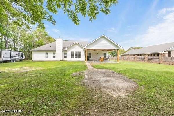 Welcome home to your own private retreat just outside of Carencro. This beautiful 4-bedroom, 2-bath home sits on 5.5 acres of breathtaking land, offering over 2,200 square feet of comfort and charm. From the moment you arrive, you'll fall in love with the long, picturesque driveway lined with gorgeous trees--creating a stunning entrance and a peaceful welcome home each and every day. The inviting front entrance sets the tone, while inside offers a spacious layout perfect for both everyday living and entertaining. Step out back to a large patio overlooking your expansive acreage, where you can relax, unwind, and soak in the tranquil surroundings. With plenty of space, privacy, and natural beauty, this property truly captures the essence of peaceful country living. Flood insurance not required.