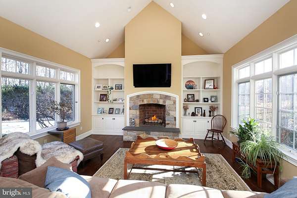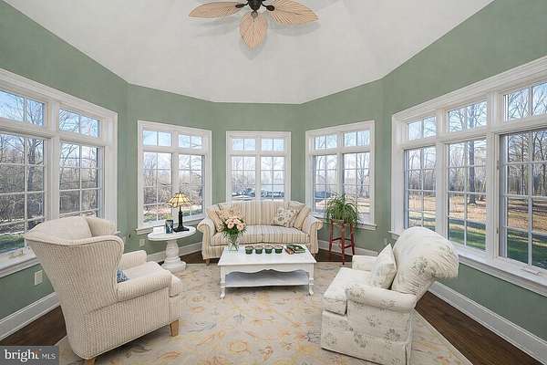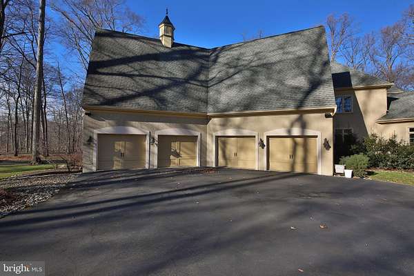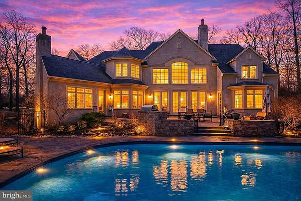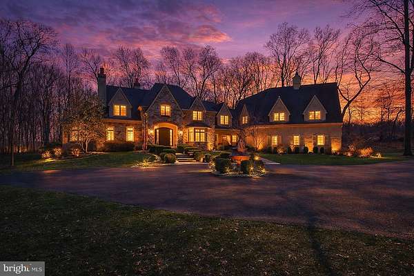 Surrounded by over 155 acres of permanently preserved land, 3525 Wellsford Lane offers something that cannot be replicated: total privacy, unobstructed views, and the certainty that the landscape will never change. Tucked within the exclusive Stoneymead enclave in Buckingham Township, this Trueblood-built French Colonial estate sits on 2.45 manicured acres bordered by 102 acres of conservation-protected Maximuck farmland, 45.8 acres of Buckingham Township preserved open space, and 7.86 acres of unbuildable Stoneymead common land. The setting feels like a private countryside retreat, yet you are just 90 minutes from Midtown Manhattan and minutes from Doylestown, New Hope, and Lambertville. A circular driveway with fountain leads to the stone and frame facade. Inside, a two-story foyer with grand curved staircase opens to 10,000+ square feet of finished living space across three levels. Hardwood floors, custom millwork, crown moldings, and soaring ceilings set the tone throughout. LED lighting and a holiday candle window lighting package add warmth and efficiency. The two-story great room features a limestone gas fireplace, walnut built-ins, and a wall of windows framing the private grounds. French doors open to an expansive paver terrace with built-in Dacor grill and a heated Anthony Sylvan pool and spa with fountains and waterfall. The gourmet kitchen is appointed with Wolf six-burner gas range with griddle, Wolf double ovens, warming drawer, Sub-Zero refrigerator/freezer, granite counters, and a center island with prep sink. A convenient laundry chute serves the upper level. A breakfast bar flows into the gathering room with cathedral ceiling, gas fireplace, and built-ins. The main level also includes a formal living room with gas fireplace and built-ins, formal dining room with tray ceiling and bay window, a study with wet bar and Sub-Zero refrigerator drawers, a butler's pantry with Sub-Zero wine cooler, solarium with cathedral ceiling, laundry room, and a powder room at each end of the home. The oversized heated four-car garage features seamless resinous quartz flooring and a dedicated storage room. Built-in closets throughout the home provide exceptional organization and storage at every turn. The upper level features five bedrooms and four full bathrooms. The primary suite is a true private oasis: a sitting room, his and hers bathrooms, dual walk-in closets with California Closets systems, and a private hallway creating complete separation from the rest of the home. The chandelier features a key-operated lowering mechanism for easy cleaning and bulb changes. A catwalk overlooking the great room connects to four additional bedrooms, all with California Closets; two are en suite and two share a hall bath. A walk-up attic provides generous walled storage space with potential to finish as an additional retreat. The finished walk-out lower level adds approximately 3,500 square feet including a billiard room, exercise room, dance studio, granite-top bar and kitchenette, theater-ready media room, full bathroom, second laundry, and generous storage. Since 2021, the owner has invested significantly in major systems: two new Trane central air conditioning systems (2021, 2022), a new high-efficiency Noble boiler (2022), a new Franklin submersible well pump with constant pressure controller (2025), new pool pump and start capacitor (2023, 2024), new pool cover, new sewer pump (2021) and ongoing HVAC maintenance. Five climate-control zones, whole-house sound system, central vacuum, security system, and indoor sprinkler system complete the package. Award-winning Central Bucks School District (Cold Spring Elementary, Holicong Middle, CB East). Easy access to Routes 202, 413, and 611. A rare opportunity to own a truly private estate where the land around you is protected forever.