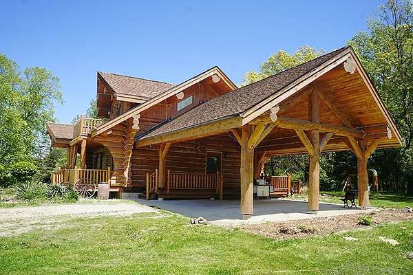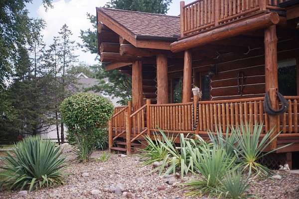 Recently landscaped! Deeded access to the Fox River included with this location; map of access is in photos. This custom designed and custom built log home must be seen to be appreciated! An open floor plan, set on 6+ acres of both pasture and woods, the property is suitable for homesteading, horses, or even a small B and B. Deeded access to the Fox River offers potential for canoeing and fishing. This 3 bedroom home features soaring ceilings and huge wraparound porches. Open wood beams throughout offer true log home living. The family room is warmed by a woodburning stove. The dining room with glass on three sides, brings the outdoors to the inside. A large portico on the south side of the home provides car port space, but also ample covered space for entertaining. There is a first floor bedroom with full bath and a first floor laundry. The loft offers lounging space or a third bedroom. The upstairs master features a full bath with jetted tub and separate shower, and a private deck to enjoy the western sunset. The basement has several finished rooms, a large workshop, and a half bath. The property has a 20X25 horse barn with an upstairs studio apartment. Fenced pasture is wired on one side for electricity. Built in Generac generator included. Enjoy country living close to major highways.