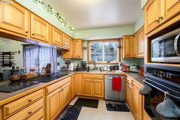 - Builtin Range, Dishwasher, Disposal, Free Standing Refrigerator