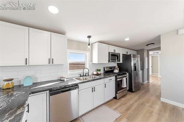 Fully remodeled 3-bedroom, 2-bath modular home on 40 acres. Updates include new flooring, paint, fixtures, and finishes throughout. The home features a spacious living area with a fireplace, an updated kitchen with new stainless steel appliances, and a brand-new furnace. Primary bedroom has its own bathroom, and two additional bedrooms offer flexible use. The 40-acre property provides ample space. Move-in ready and updated throughout.