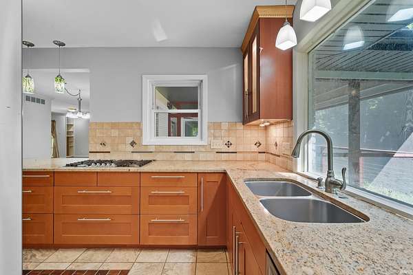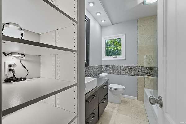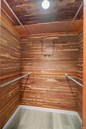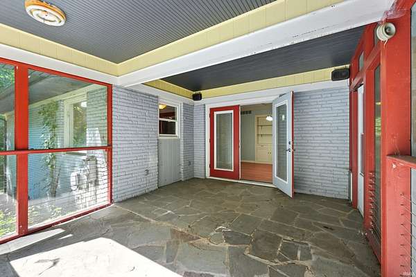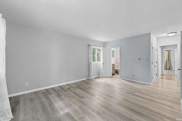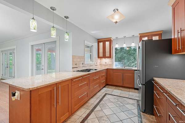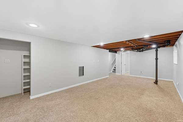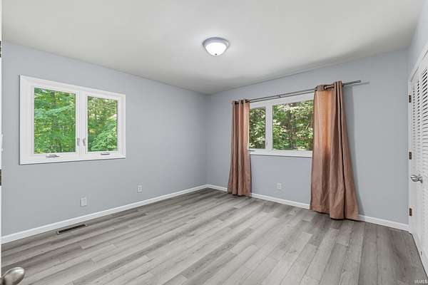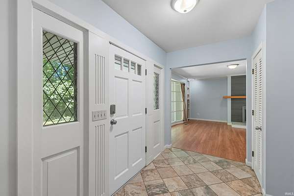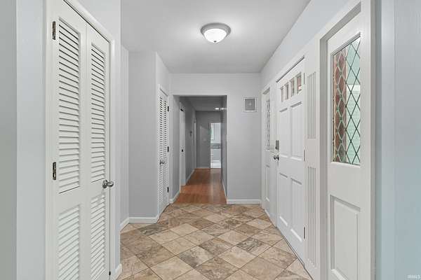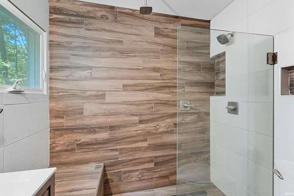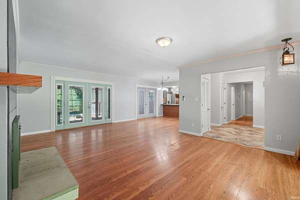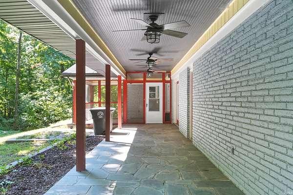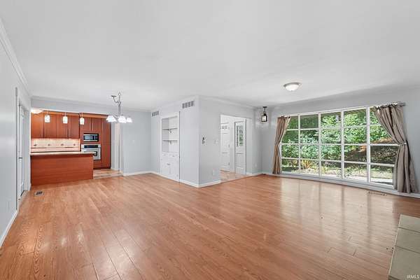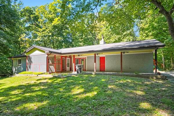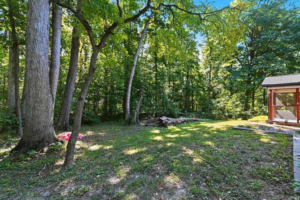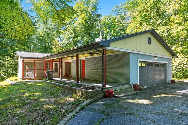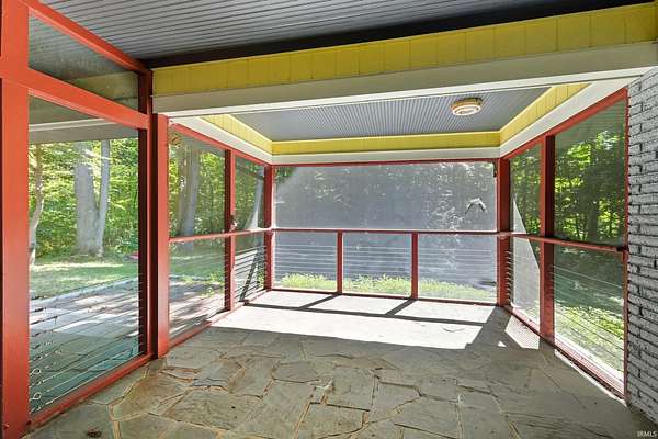 Tucked away on a 1.8-acre densely wooded lot, this mid-century modern-styled ranch offers the perfect blend of privacy and convenience within Southwest Allen County Schools. Just minutes from Lutheran Hospital, the home feels like a secluded retreat surrounded by nature. The open living areas feature large windows that frame beautiful wooded views, built-in details, and a semi-open floor plan with hard surface flooring throughout the main level. The home includes three bedrooms--one a master suite with updated bathrooms--plus a partially finished basement with an additional living room, bonus room, and generous storage space. Enjoy the outdoors from the wrap-around porch and multiple seating areas overlooking the trees. A two-car garage and circular driveway provide ample parking and convenience.