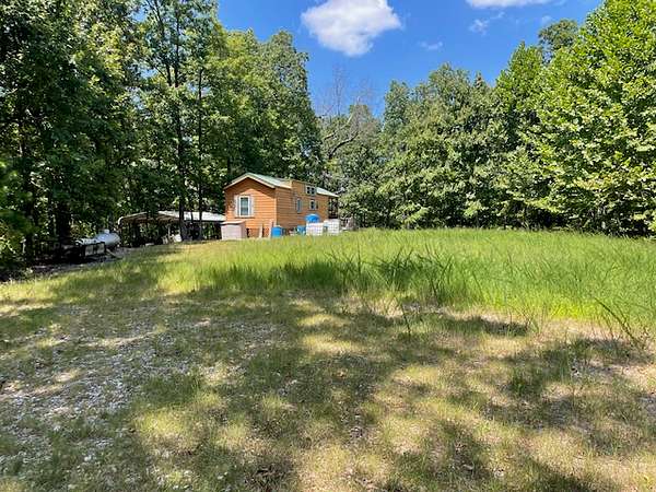 Rumor has it that the cave used to be a moonshiners hang out. A flow of water comes out of the cave and makes a stream in the valley below. This could possibly be used for hydro power on this off grid getaway. Eighty acres has deeded 30 foot access road with a 420 sq foot tiny home set near the middle of the property.