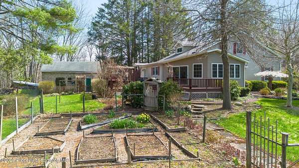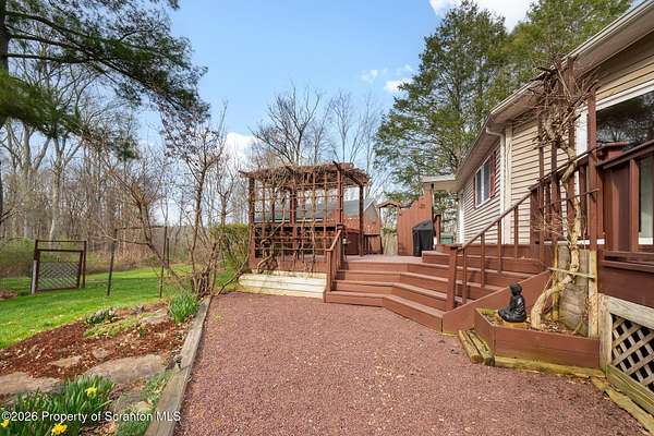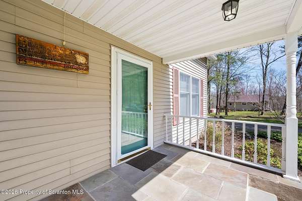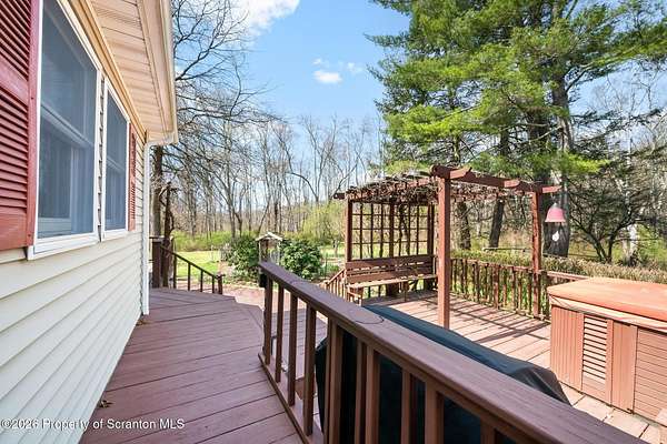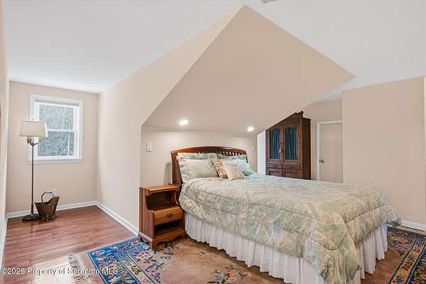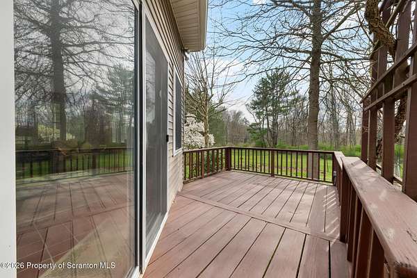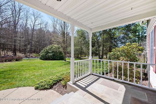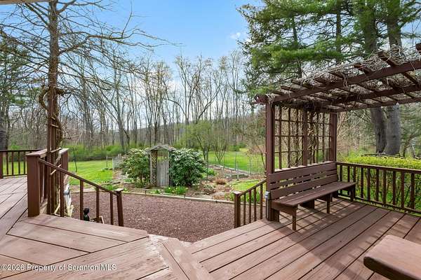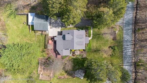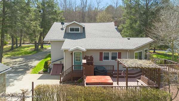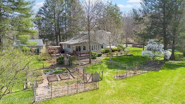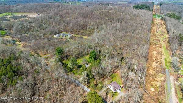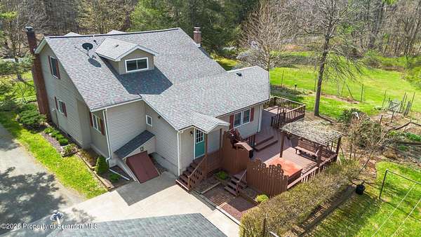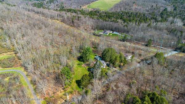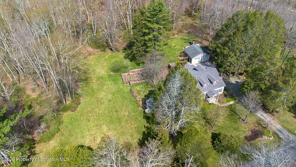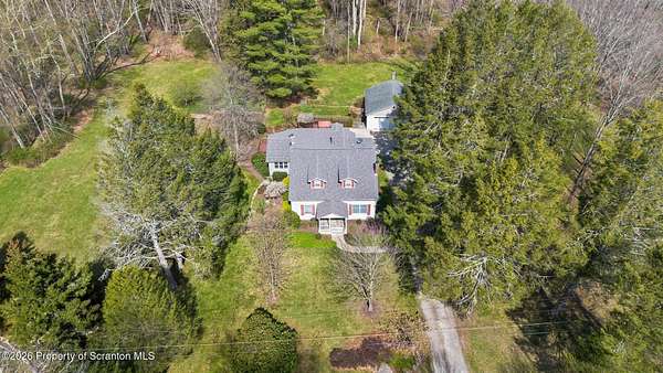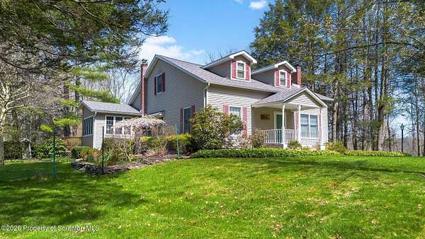 Tucked away on 18 scenic acres in the highly sought-after Abington Heights School District, this charming Cape Cod offers the perfect blend of privacy, space, and natural beauty. Surrounded by mature trees and lush landscaping, this 4-bedroom, 2.5-bath home provides a peaceful setting while still being conveniently located near everyday amenities.Step inside to discover a welcoming and unexpectedly spacious interior, highlighted by hardwood flooring, a cozy fireplace, and an abundance of natural light throughout. The thoughtfully designed layout is ideal for both comfortable living and entertaining. A standout feature is the sun-drenched family room, lined with windows that showcase serene views of the property year-round--creating the perfect space to relax or gather.The main level includes three well-proportioned bedrooms and a full bath, offering flexibility for guests, home office space, or one-floor living. Upstairs, the entire second level is dedicated to the private primary suite, complete with a spacious bedroom, walk-in closet, and full en-suite bath--your own quiet retreat.Outdoors, the property truly shines. Beautiful perennial gardens provide vibrant color across the seasons, enhancing the natural surroundings. A detached two-car garage with an attached stone shed offers ample storage and workspace options for hobbies or equipment.Whether you're sipping coffee on the porch, exploring the wooded acreage, or simply enjoying the quiet setting, this property offers a rare sense of tranquility. Located just minutes from Lackawanna State Park, you'll have convenient access to outdoor recreation including hiking, fishing, and more.A unique opportunity to own a private acreage property in one of Northeast Pennsylvania's premier school districts--this is a home you won't want to miss.