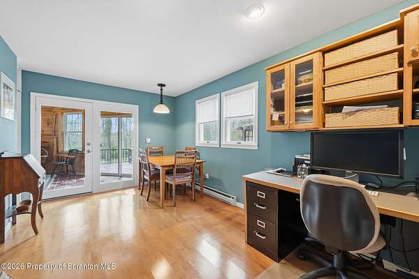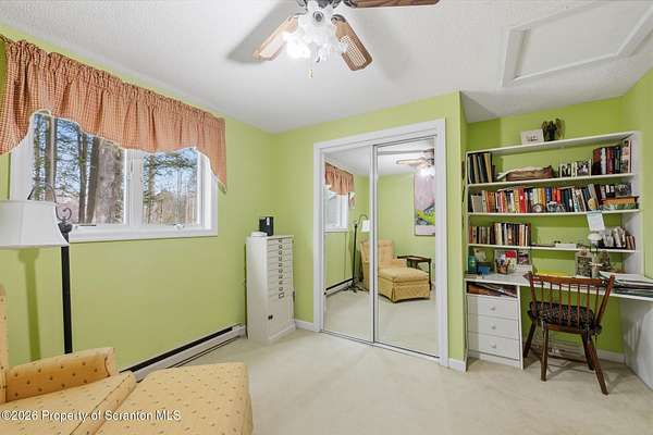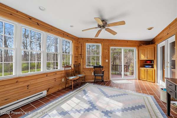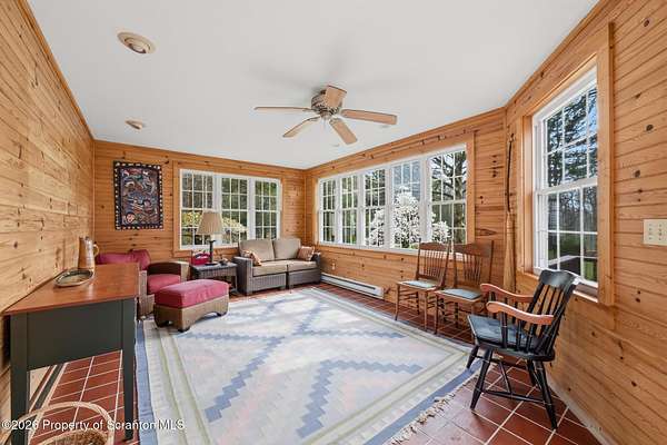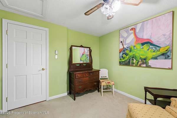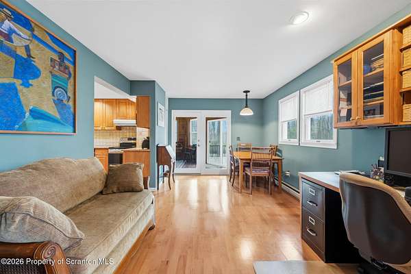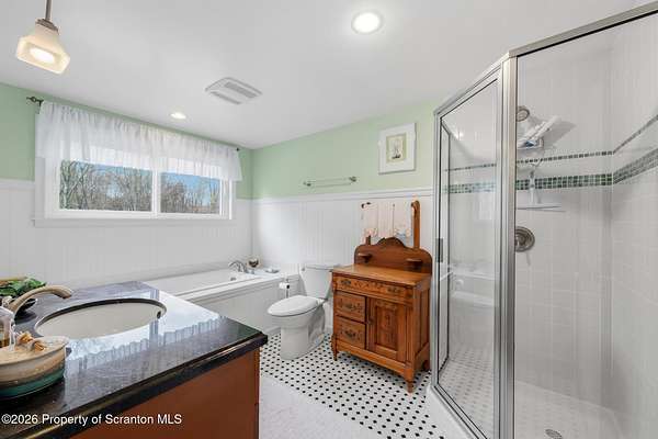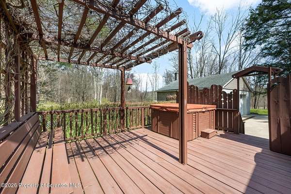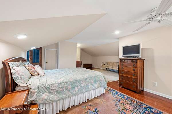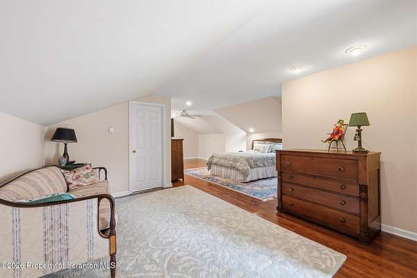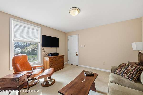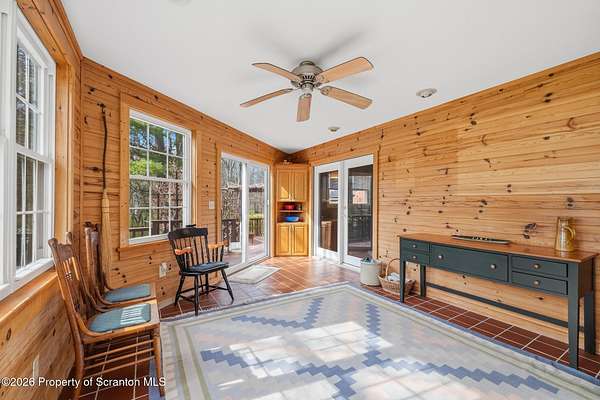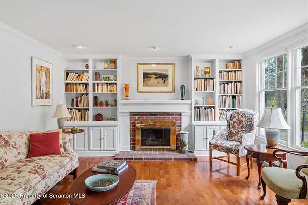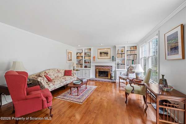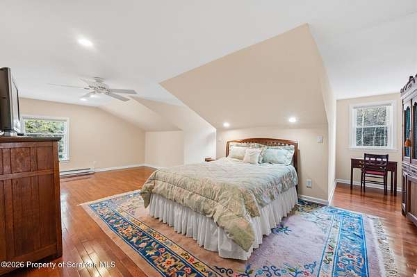 Tucked away on 18 scenic acres in the highly sought-after Abington Heights School District, this charming Cape Cod offers the perfect blend of privacy, space, and natural beauty. Surrounded by mature trees and lush landscaping, this 4-bedroom, 2.5-bath home provides a peaceful setting while still being conveniently located near everyday amenities.Step inside to discover a welcoming and unexpectedly spacious interior, highlighted by hardwood flooring, a cozy fireplace, and an abundance of natural light throughout. The thoughtfully designed layout is ideal for both comfortable living and entertaining. A standout feature is the sun-drenched family room, lined with windows that showcase serene views of the property year-round--creating the perfect space to relax or gather.The main level includes three well-proportioned bedrooms and a full bath, offering flexibility for guests, home office space, or one-floor living. Upstairs, the entire second level is dedicated to the private primary suite, complete with a spacious bedroom, walk-in closet, and full en-suite bath--your own quiet retreat.Outdoors, the property truly shines. Beautiful perennial gardens provide vibrant color across the seasons, enhancing the natural surroundings. A detached two-car garage with an attached stone shed offers ample storage and workspace options for hobbies or equipment.Whether you're sipping coffee on the porch, exploring the wooded acreage, or simply enjoying the quiet setting, this property offers a rare sense of tranquility. Located just minutes from Lackawanna State Park, you'll have convenient access to outdoor recreation including hiking, fishing, and more.A unique opportunity to own a private acreage property in one of Northeast Pennsylvania's premier school districts--this is a home you won't want to miss.