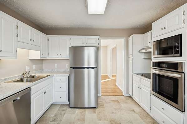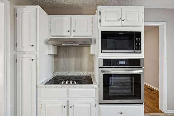 - Built-In Electric Oven, Cooktop, Dishwasher, Electric Oven, Microwave, Refrigerator, Stainless Steel Appliance(s)