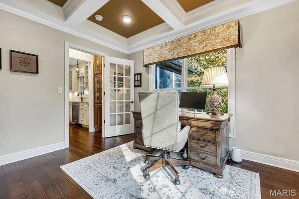 - Beamed Ceilings, Bookcases, Breakfast Bar, Breakfast Room, Built-In Features, Ceiling Fan(s), Coffered Ceiling(s), Crown Molding, Custom Cabinetry, Double Vanity, Entrance Foyer, Granite Counters, High Ceilings, High Speed Internet, Kitchen Island, Open Floorplan, Pantry, Separate Shower, Soaking Tub, Special Millwork, Storage, Vaulted Ceiling(s), Walk-In Closet(s), Walk-In Pantry, Workshop/Hobby Area