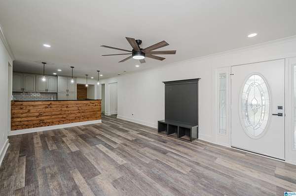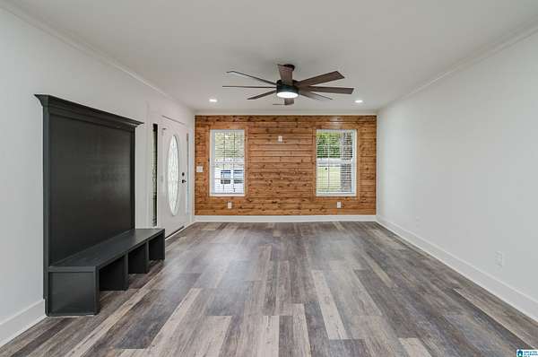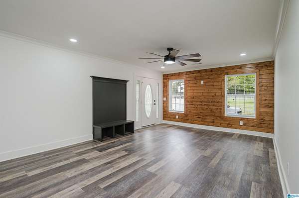 Welcome to your dream home--fully renovated and ready for its next chapter! This spacious 6-bedroom, 4-bathroom home offers 2,295 sq. ft. of living space nestled on a serene 3-acre lot. Tucked away on a quiet dirt road, you'll enjoy the peace of country living while still being just 10 minutes from the interstate. Step inside and be greeted by bright white walls, warm wood accent features, and abundant natural light. The home boasts beautiful LVP flooring, energy-efficient LED lighting, and custom built-in closets throughout. The modern kitchen is a showstopper with stainless steel appliances and plenty of storage, perfect for everyday living or entertaining. Outside, unwind on the charming front porch, surrounded by towering trees and wide-open space--ideal for family gatherings, pets, or simply soaking in the quiet. With every detail thoughtfully updated, this home combines modern comfort with rustic charm, giving you the best of both worlds.
