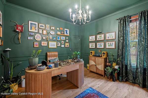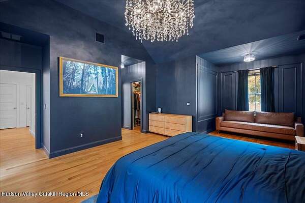 - Cathedral Ceiling(s), Chandelier, Crown Molding, Double Vanity, Eat-In Kitchen, High Ceilings, His and Hers Closets, Natural Woodwork, Open Floorplan, Pantry, Smart Thermostat
